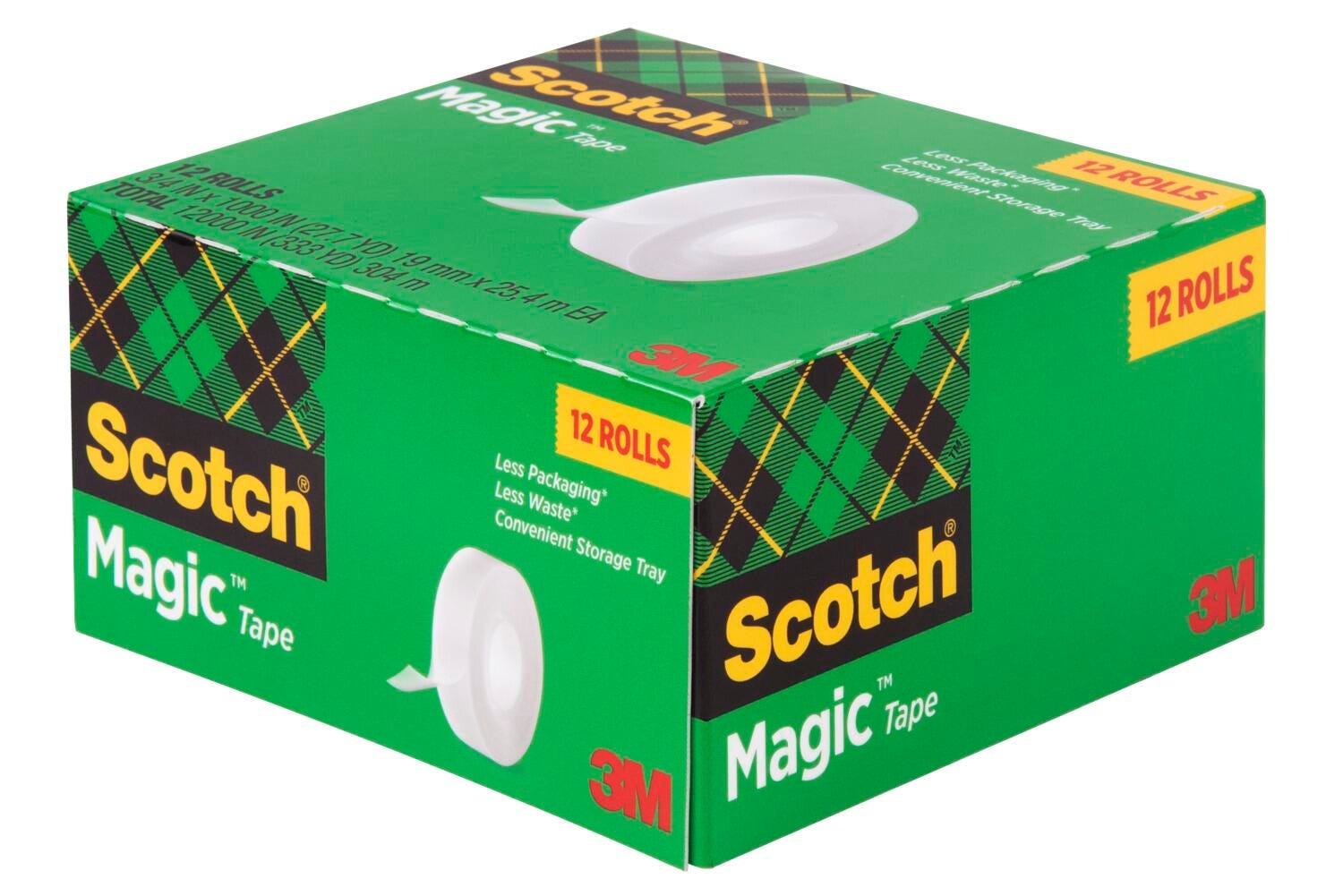 The Scotch Brand's famous matte finish invisible tape uses unique 3M adhesive technology to bond tightly with paper and disappear without a trace. Write on it with pencil, pen or marker every word is loud and clear. Scotch Magic Tape: Always ready for big ideas and everyday mends.Features