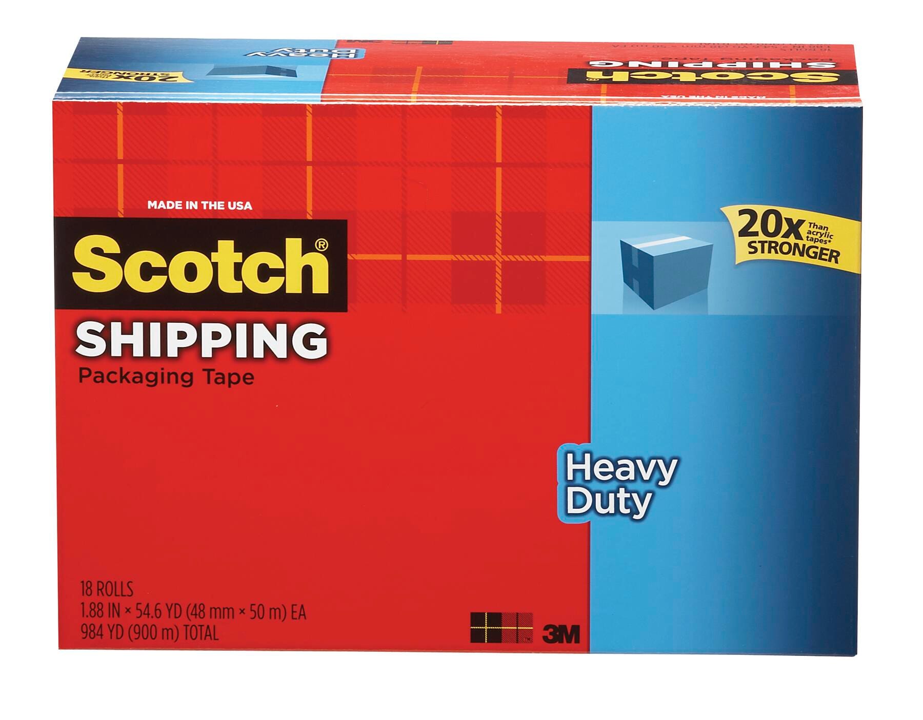 Scotch Heavy Duty Shipping Packaging Tape, 1.88 Inches x 54.6 Yards, Clear, Pack of 18