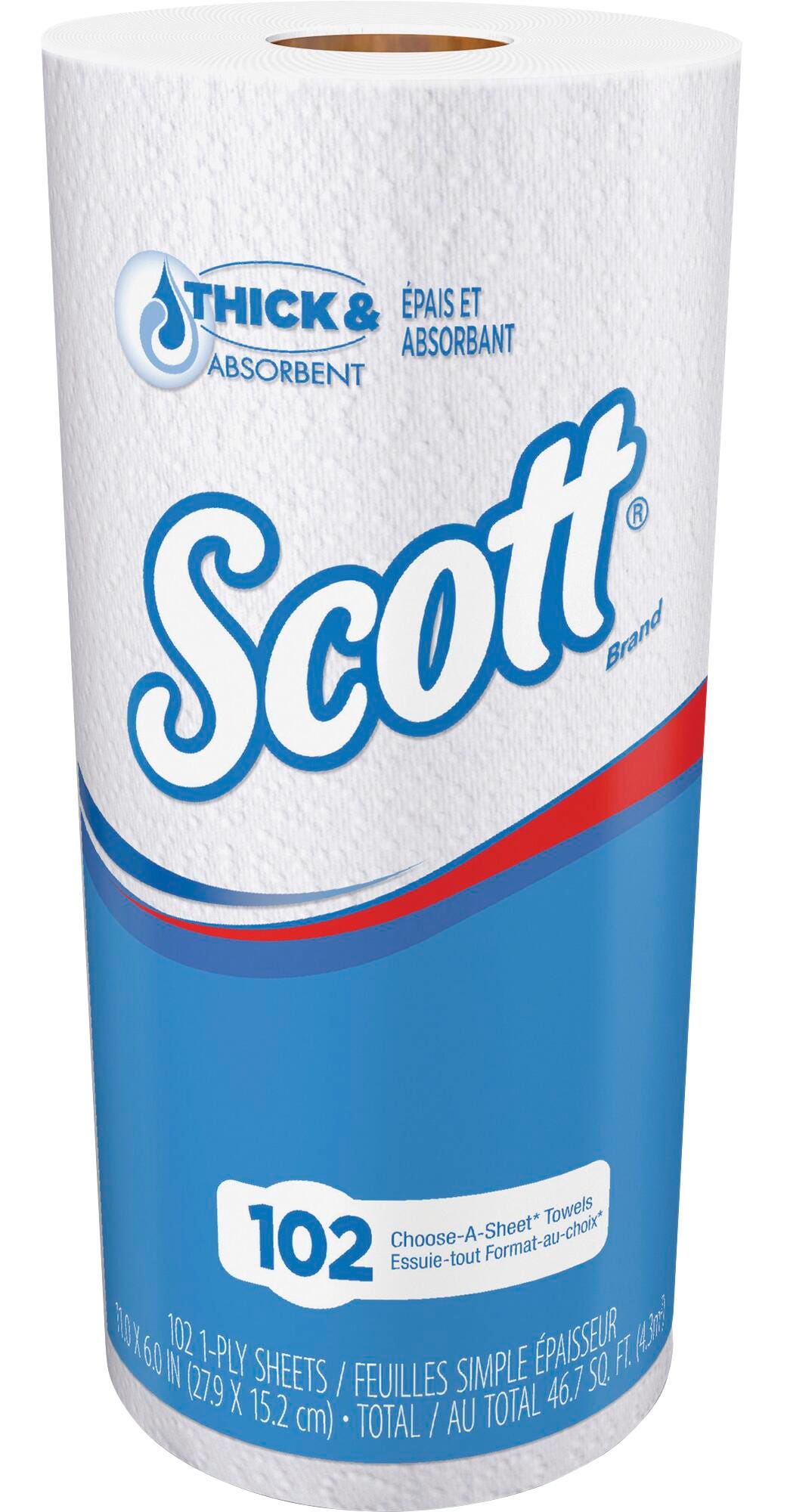 Deal with almost any type of cleanup, big or small, with these Scott Choose-a-Sheet Paper Towels. You decide the size of the one-ply towel you need. Scott paper towels are made with a unique and extra-durable ridge that quickly and effectively absorbs messes, leaving surfaces mess-free, dry and streak-free. They are multipurpose and multi-surface for excellent versatility in kitchens, bathrooms, offices, shops and just about anywhere else. Towels quickly and effectively absorb any size mess with confidence.
