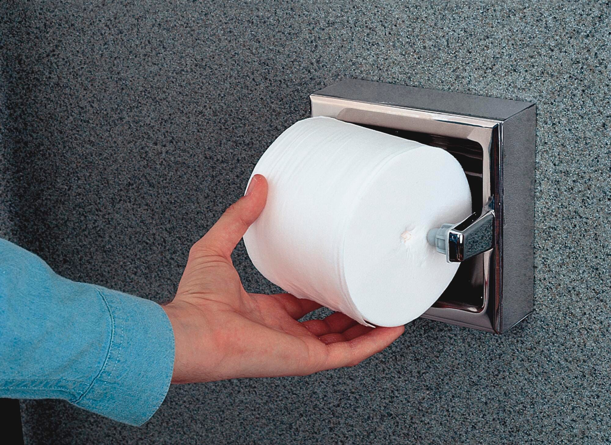 Coreless, standard roll tissue is made with a percentage of a rapidly renewable plant fiber to promote environmental stewardship. High-capacity, easy-maintenance method results in less runouts and lower maintenance costs. Economical design is nearly 75 percent longer than standard bath tissue to reduce frequent maintenance. With no core, this tissue completely reduces core waste. Bathroom tissue is designed for use with standard-roll bath tissue dispensers (sold separately).