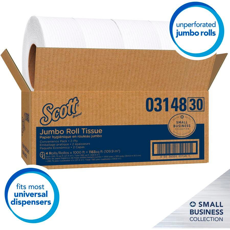 Scott Jr Jumbo Roll Toilet Paper, 2-Ply, White, Pack of 4