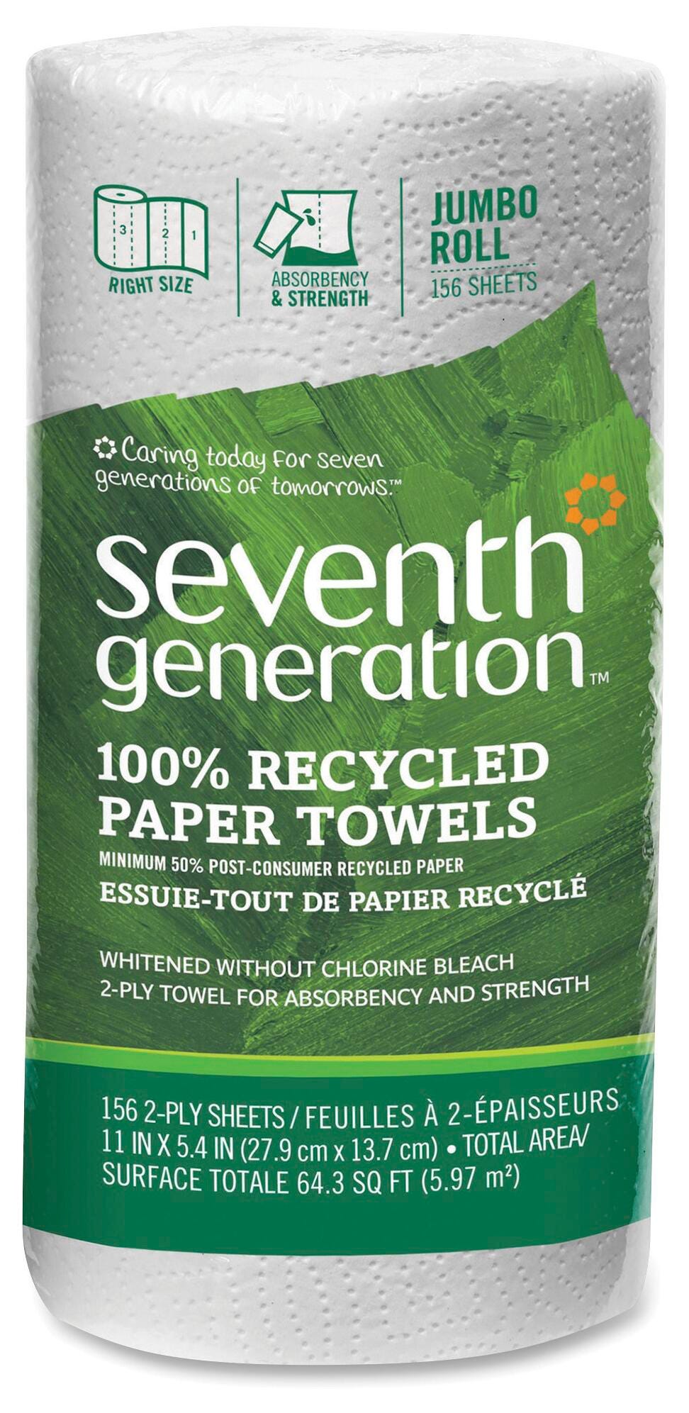 Hardworking, recycled paper towels absorb spills quickly, even when wet. Right size means you choose the best size for your cleaning task, using the extra perforations for small sizes. Buying products made from recycled paper helps reduce the need for virgin wood pulp and that means more trees are left standing. Towels in these jumbo rolls are whitened without chemicals containing chlorine. They have no added dyes or fragrances. Two-ply construction delivers absorbency and strength.