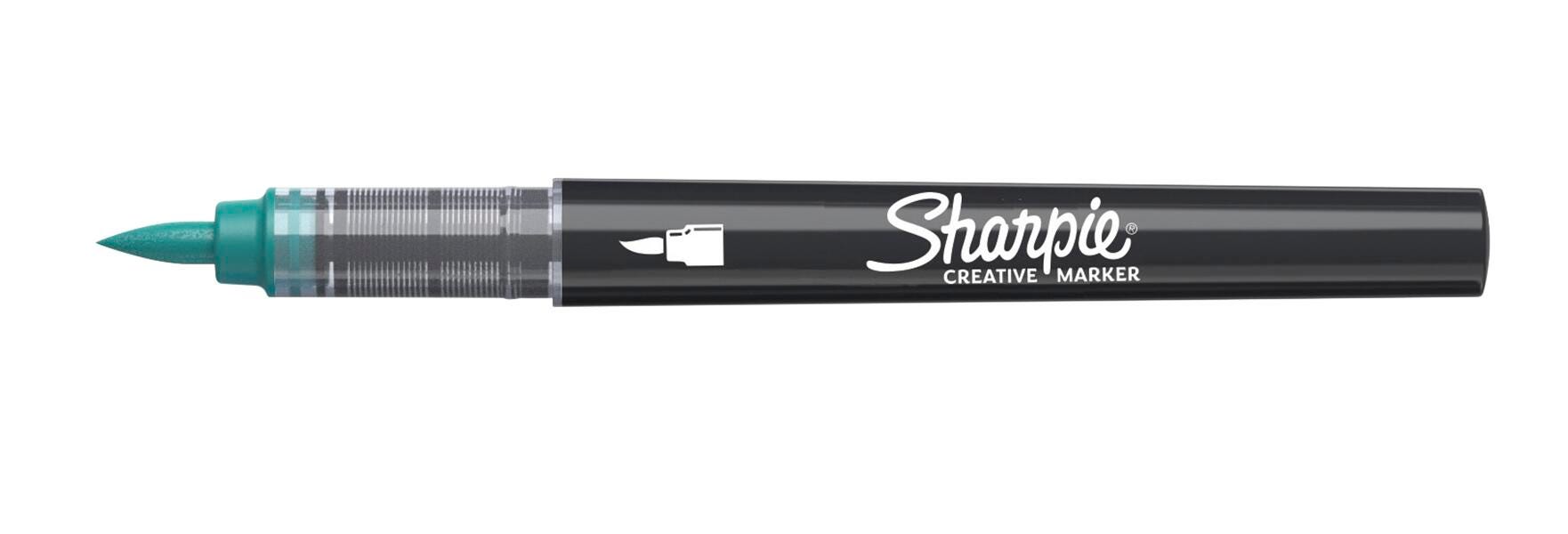 Bring your artistic vision to life with Sharpie Creative Markers. These markers boast stunning water-based acrylic ink that smoothly glides across the page, and won't bleed through. The control of a marker combines with the paint-like ink to create bold marks on light and dark surfaces including paper, metal, wood, ceramic, glass, rock, and canvas. Plus, the markers come with a flexible brush tip that can produce varied widths in one stroke. This pack contains 12 assorted colors.