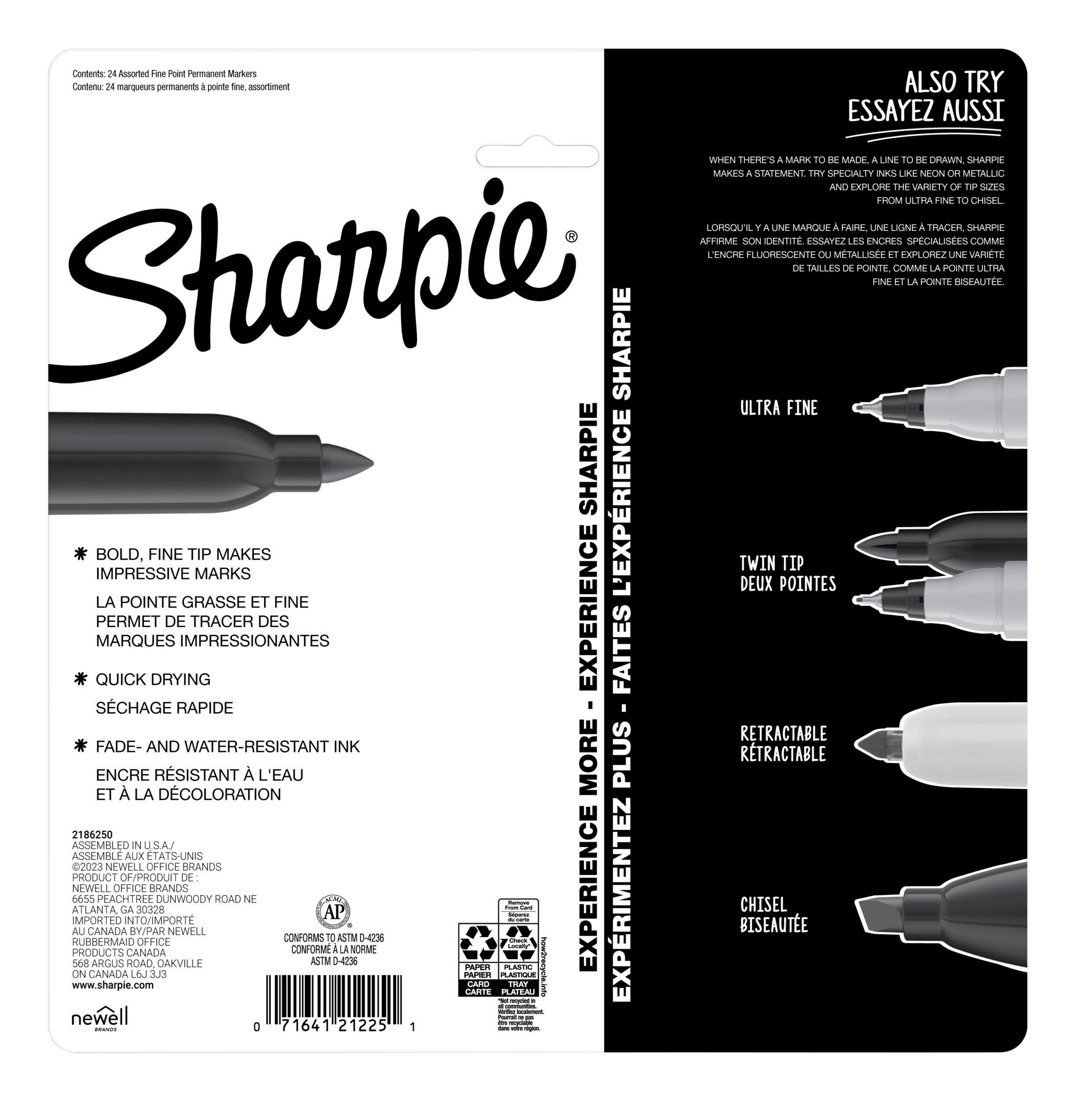 Sharpie Permanent Markers, Fine Point, Assorted Glam Pop Colors, Pack of 24