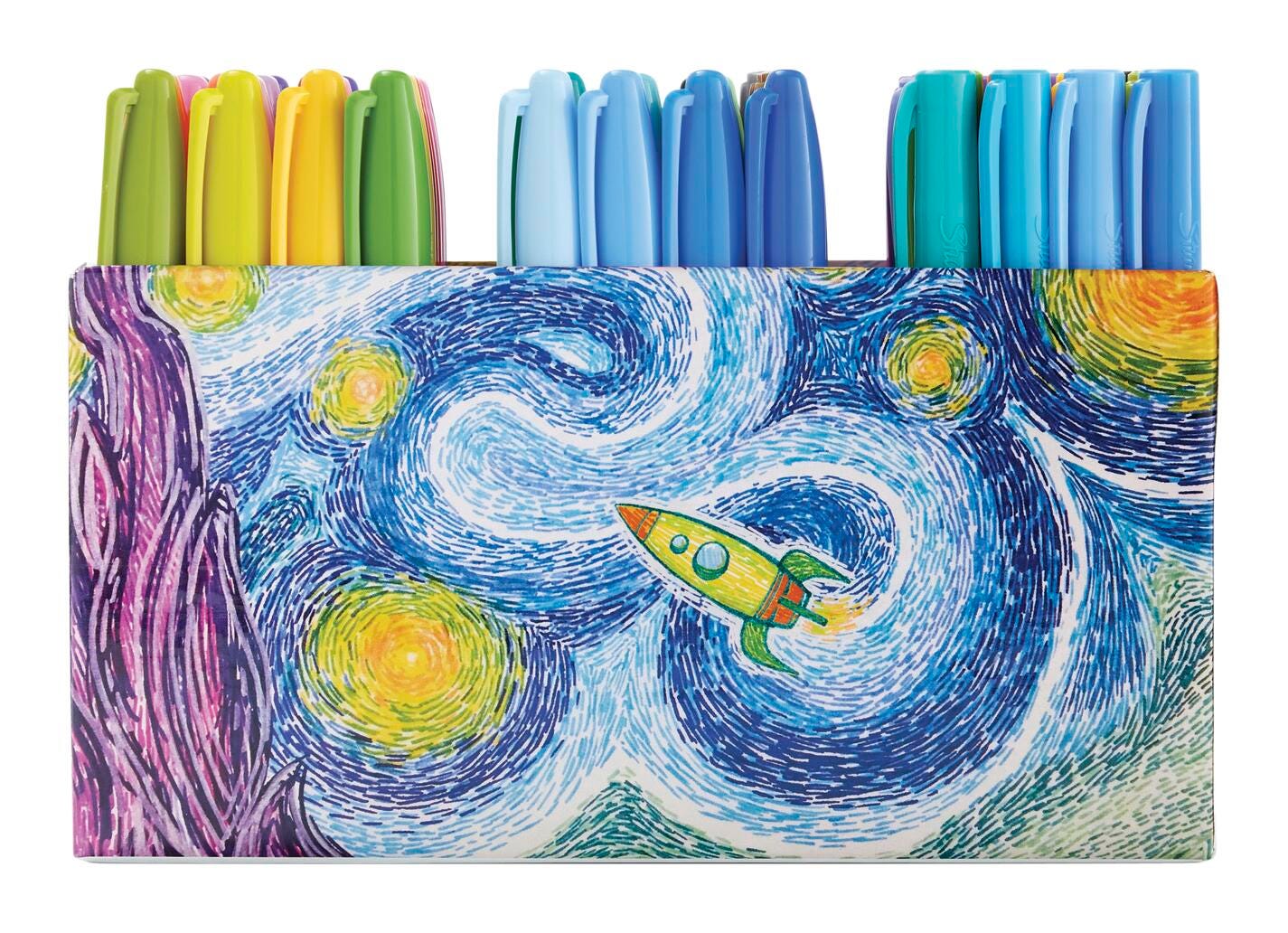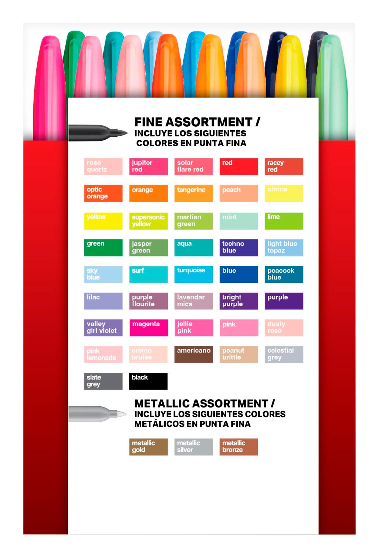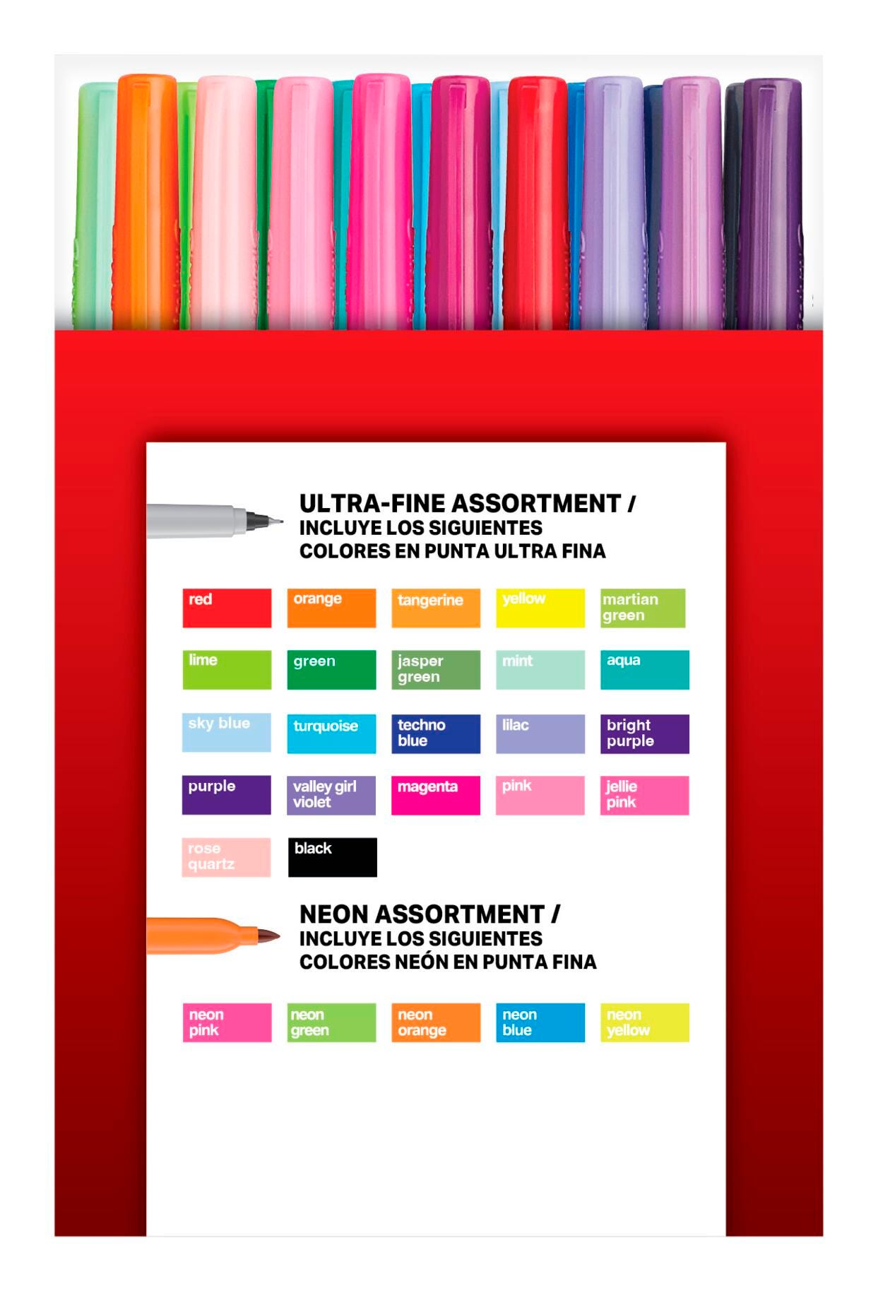 This Ultimate Collection delivers Sharpie Permanent Markers in a variety of colors and tip sizes. Each marker produces bold, lasting marks on common and hard-to-mark surfaces. The assortment of point types allows you to pivot from precise detail to bold marks in an endless amount of color combinations. All 72 markers fit conveniently and neatly in one sturdy chipboard box. This pack includes the following assortment of markers: 42 fine point, 22 ultra-fine point, 5 neon fine point, and 3 metallic fine point.