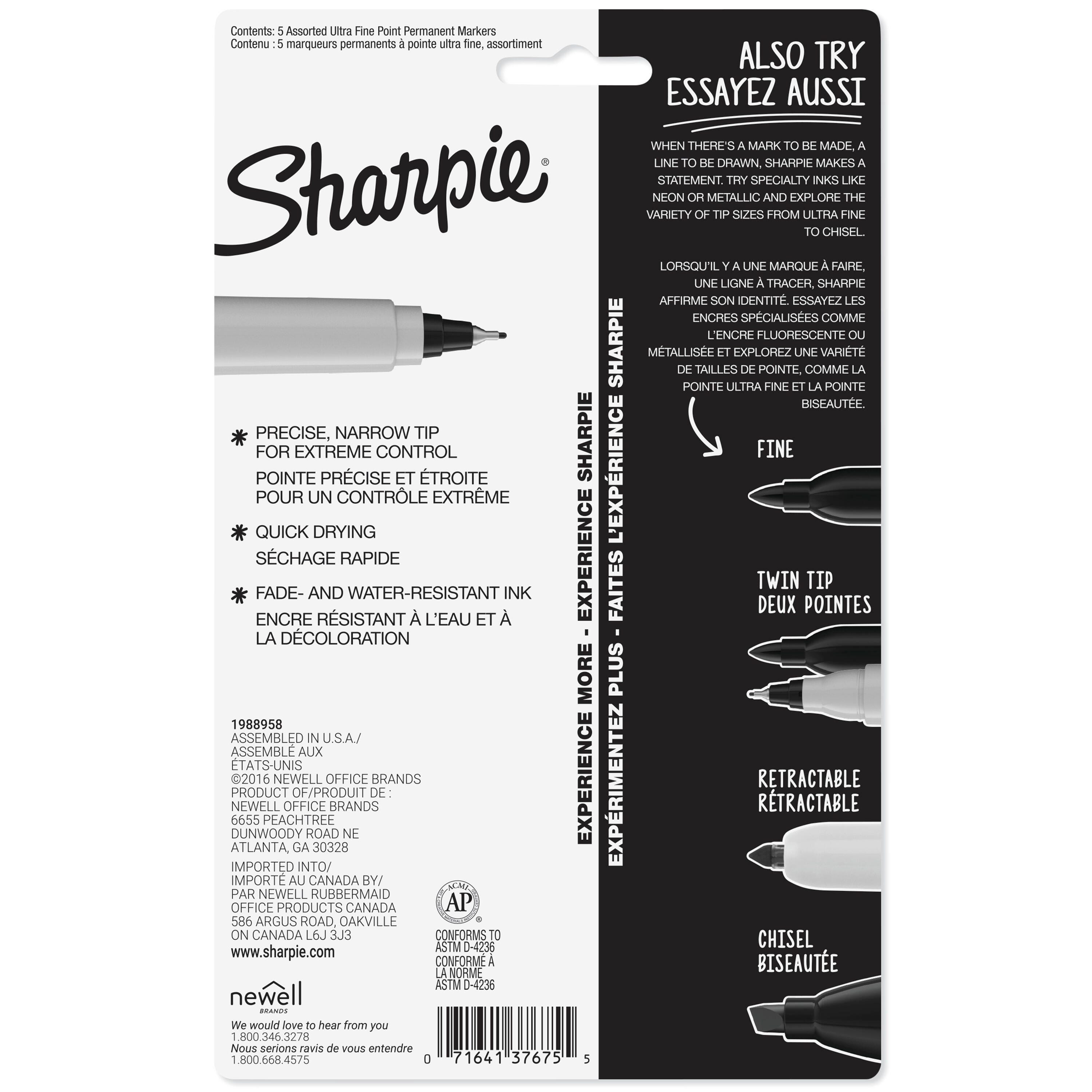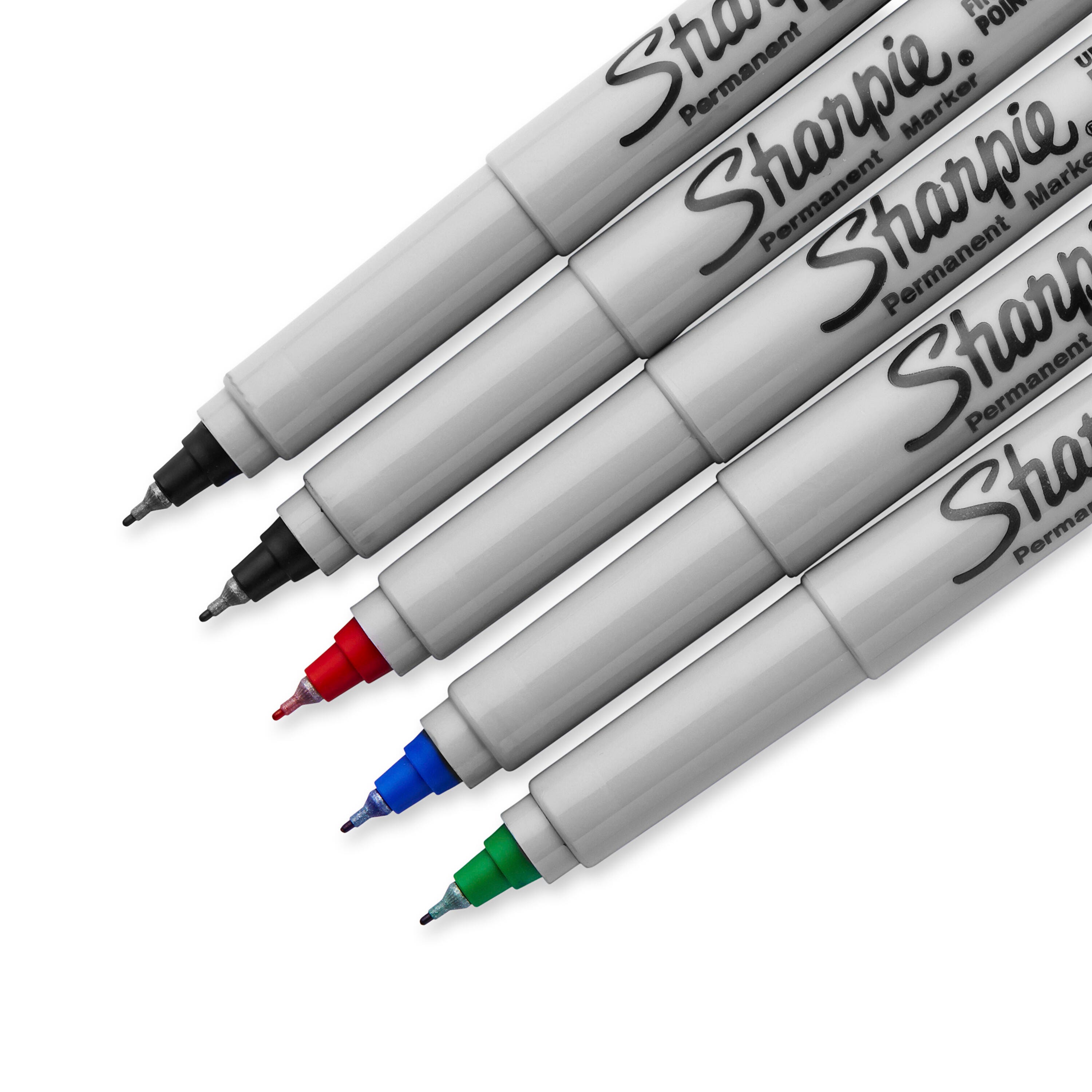 Sharpie Permanent Markers, Ultra Fine Point, Assorted Colors, Set of 5