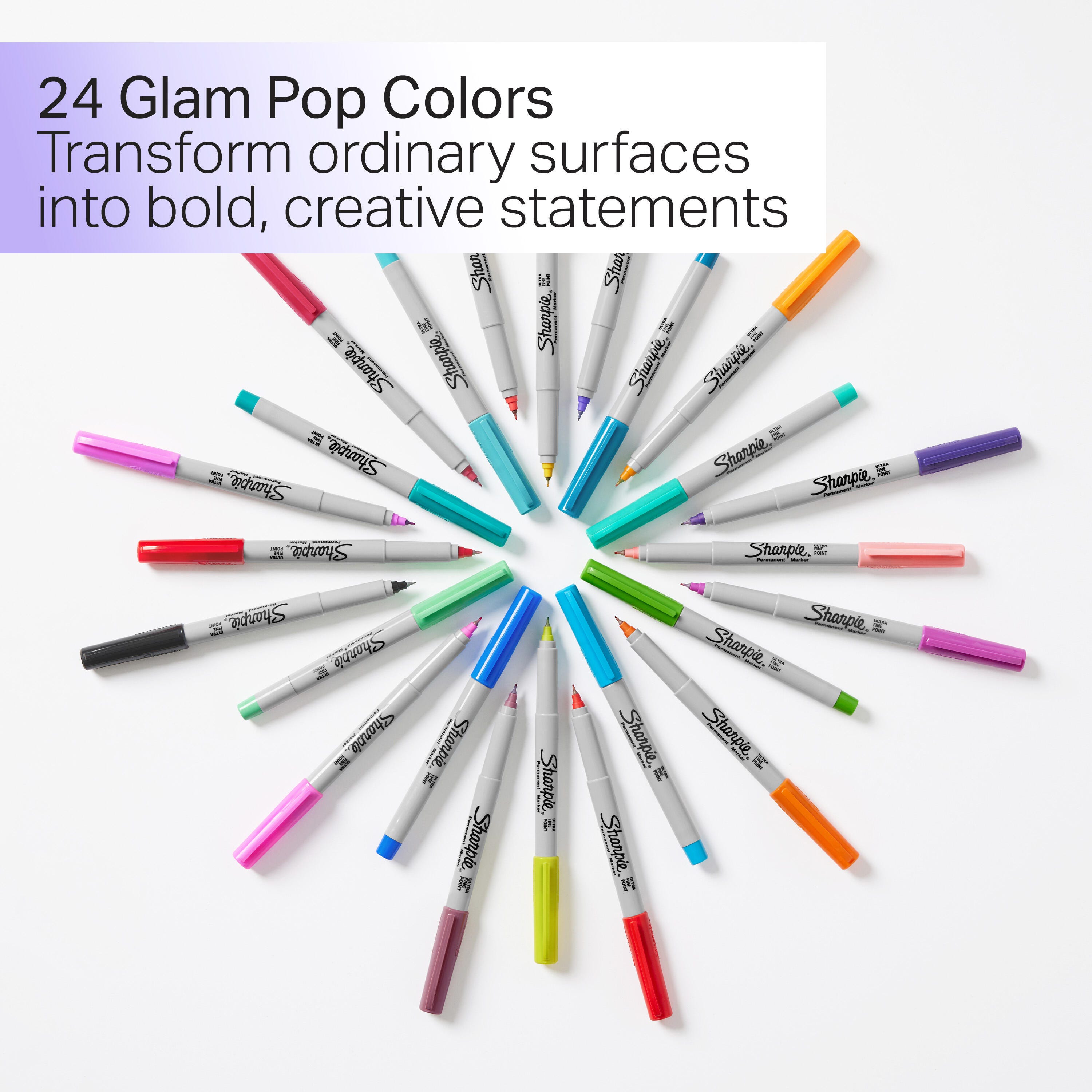 Sharpie Permanent Markers, Ultra Fine Point, Assorted Glam Pop Colors, Pack of 24