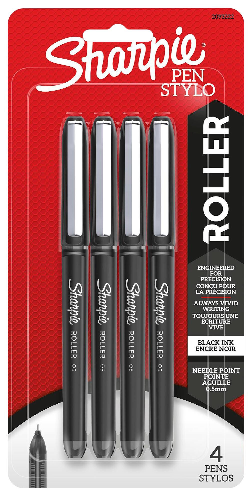 • Sharpie Rollerball Pens, Needle Point, 0.5mm, Black Ink, Set of 4