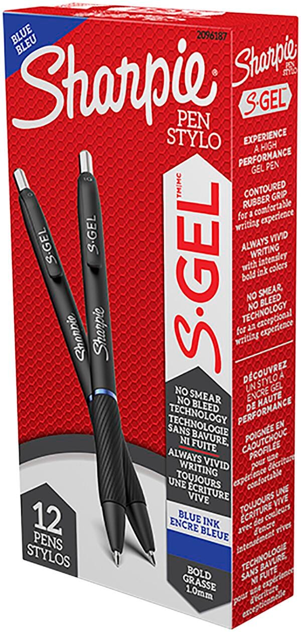 Discover the exceptional Sharpie S-Gel Pen. These gel pens deliver an always-vivid writing experience with specially formulated blue ink that prevents smearing and won't bleed through the page. With a contoured rubber grip, these pens provide comfortable writing during any task. Plus, its sleek design is sure to stand out.Features