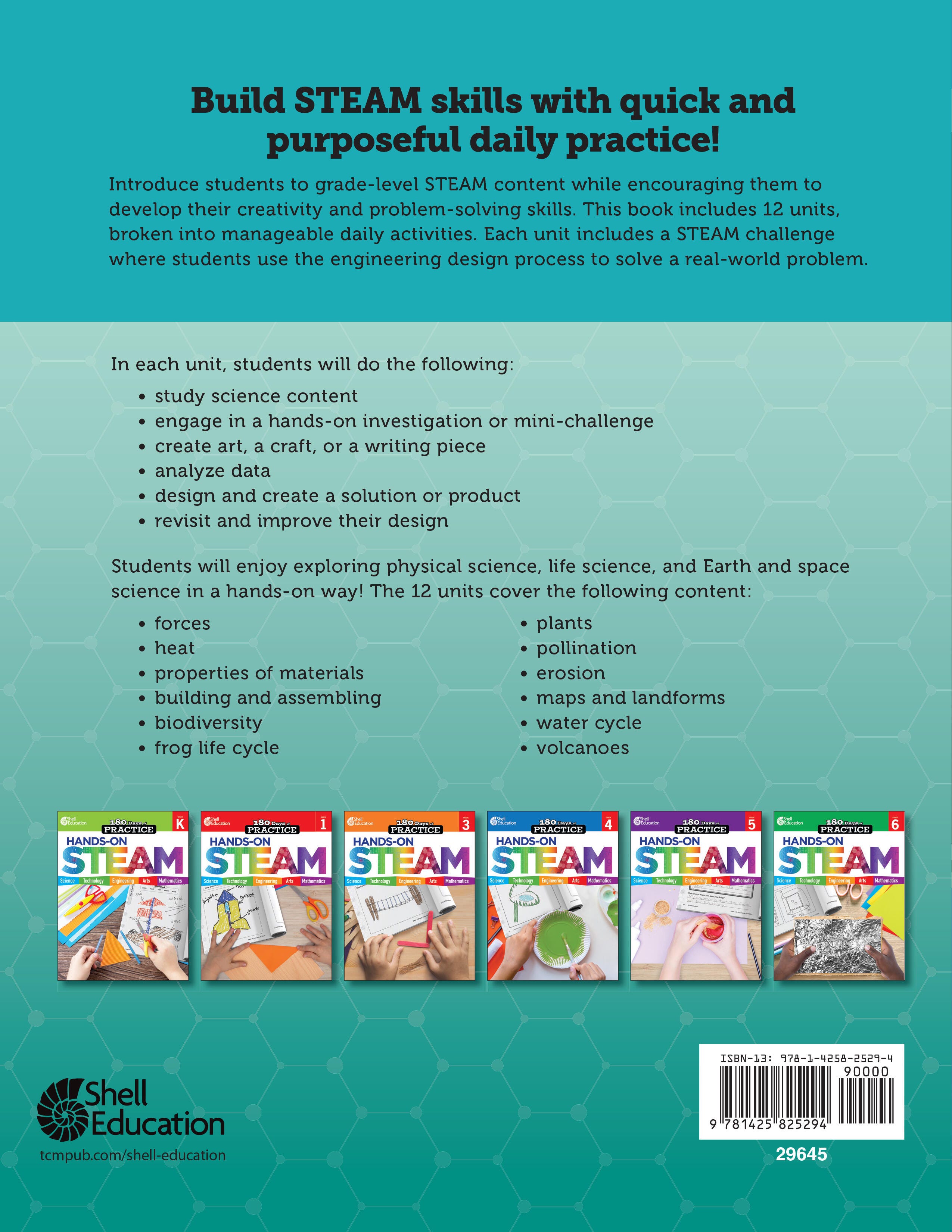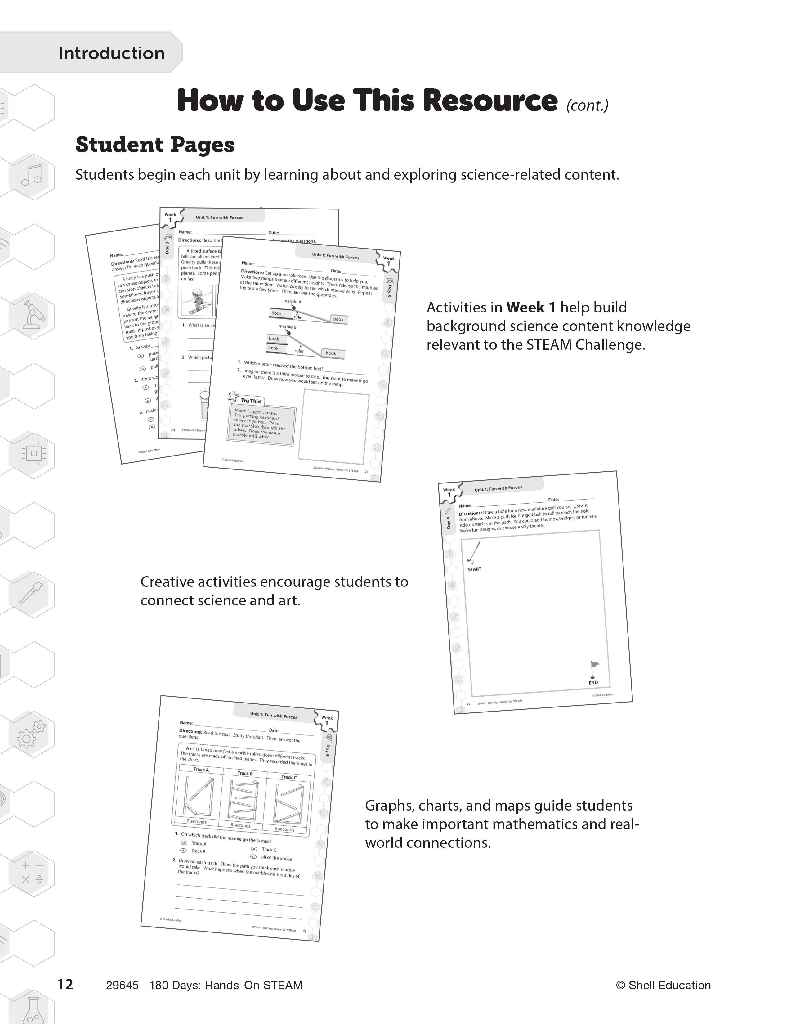 Incorporate hands-on lab activities that integrate STEAM concepts with 180 days of daily practice! This invaluable resource provides weekly STEAM activities that improve students’ critical thinking skills and are easy to incorporate into any learning environment. Students will explore STEAM concepts through the inquiry process with hands-on lab activities. Each week introduces a STEAM problem, need, or phenomena that they will address through a guided step-by-step challenge. Aligned to Next Generation Science Standards (NGSS) and state standards, this resource includes digital materials. Provide students with the skills they need to develop problem-solving skills with this essential resource!