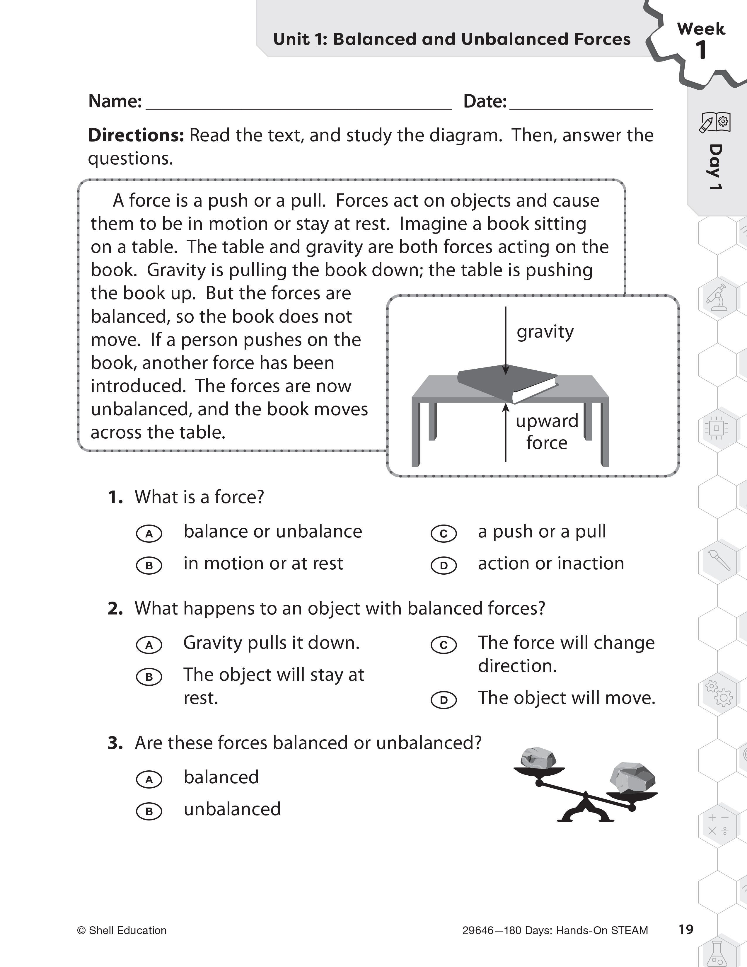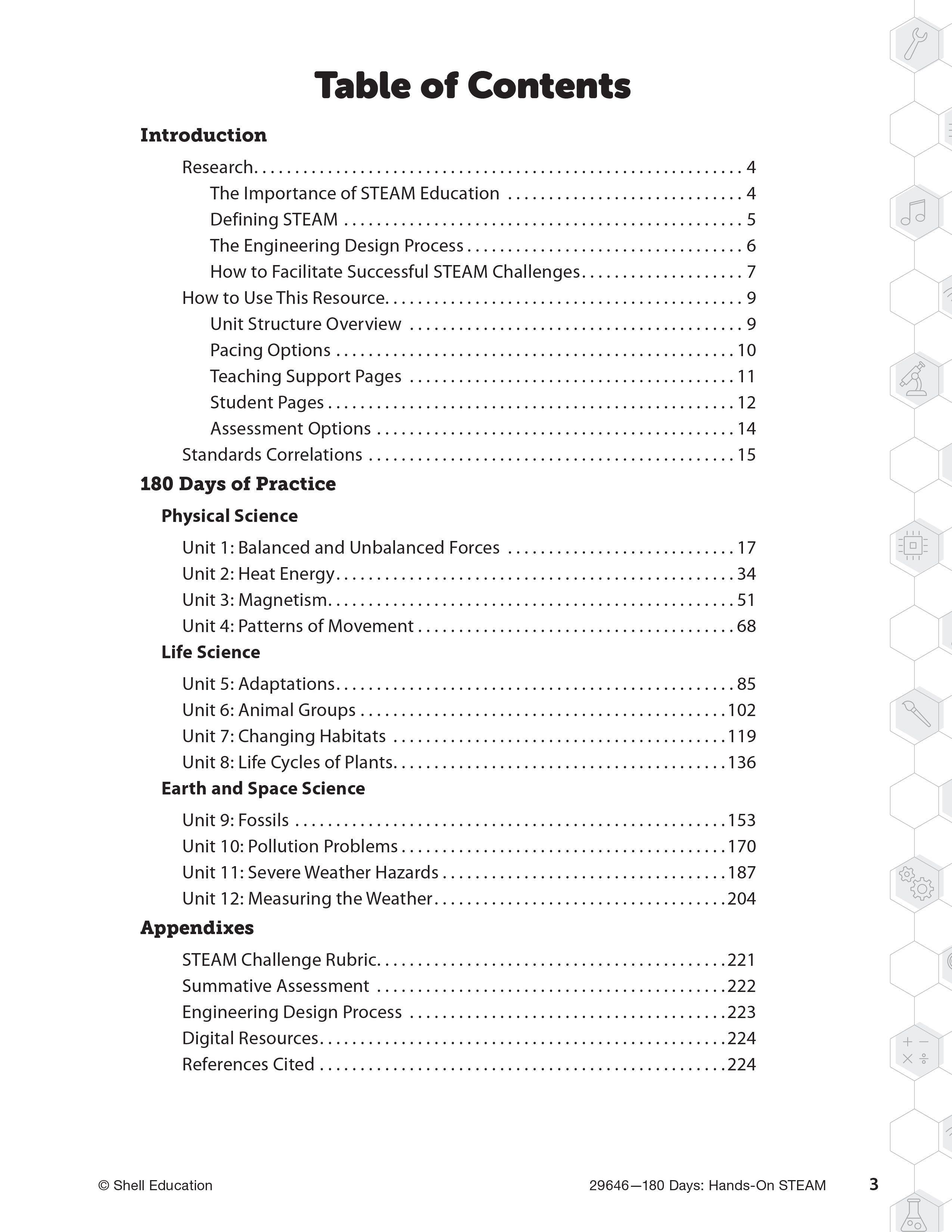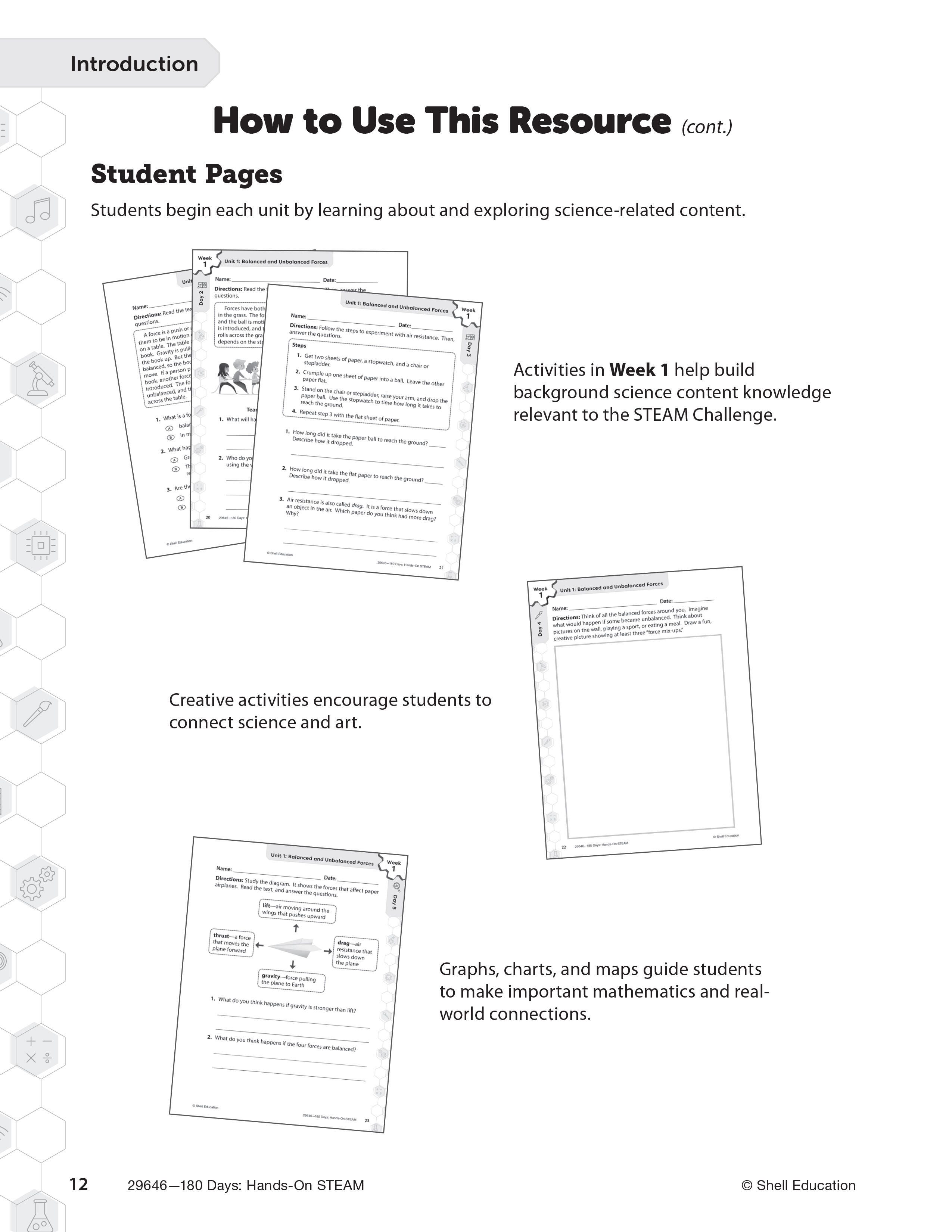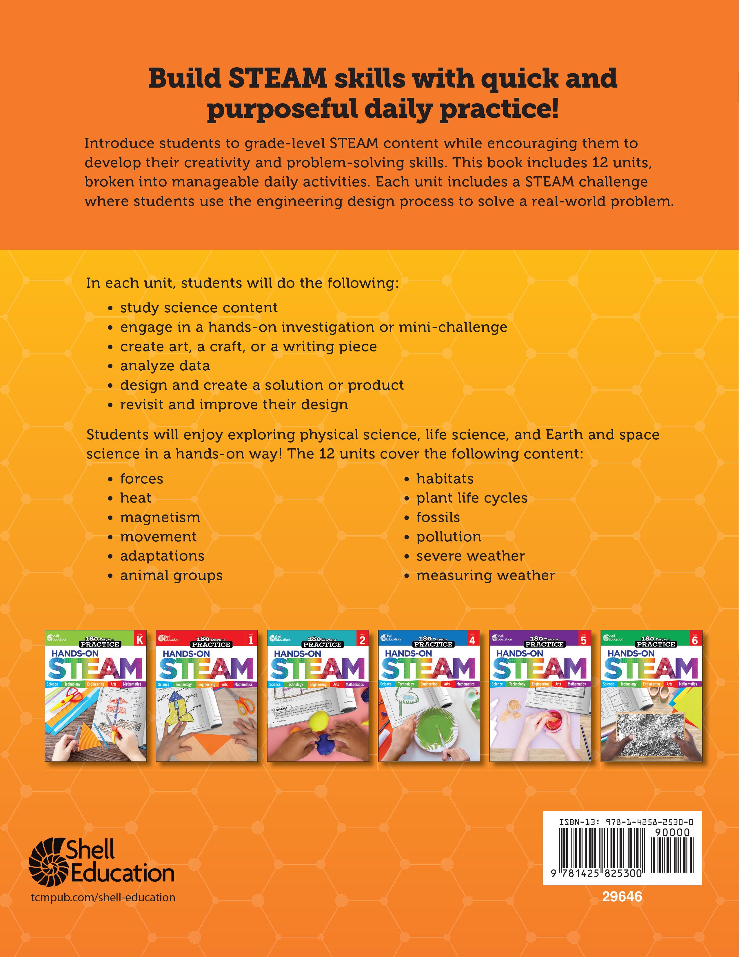 Incorporate hands-on lab activities that integrate STEAM concepts with 180 days of daily practice! This invaluable resource provides weekly STEAM activities that improve students’ critical thinking skills and are easy to incorporate into any learning environment. Students will explore STEAM concepts through the inquiry process with hands-on lab activities. Each week introduces a STEAM problem, need, or phenomena that they will address through a guided step by step challenge. Aligned to Next Generation Science Standards (NGSS) and state standards, this resource includes digital materials. Provide students with the skills they need to develop problem-solving skills with this essential resource!