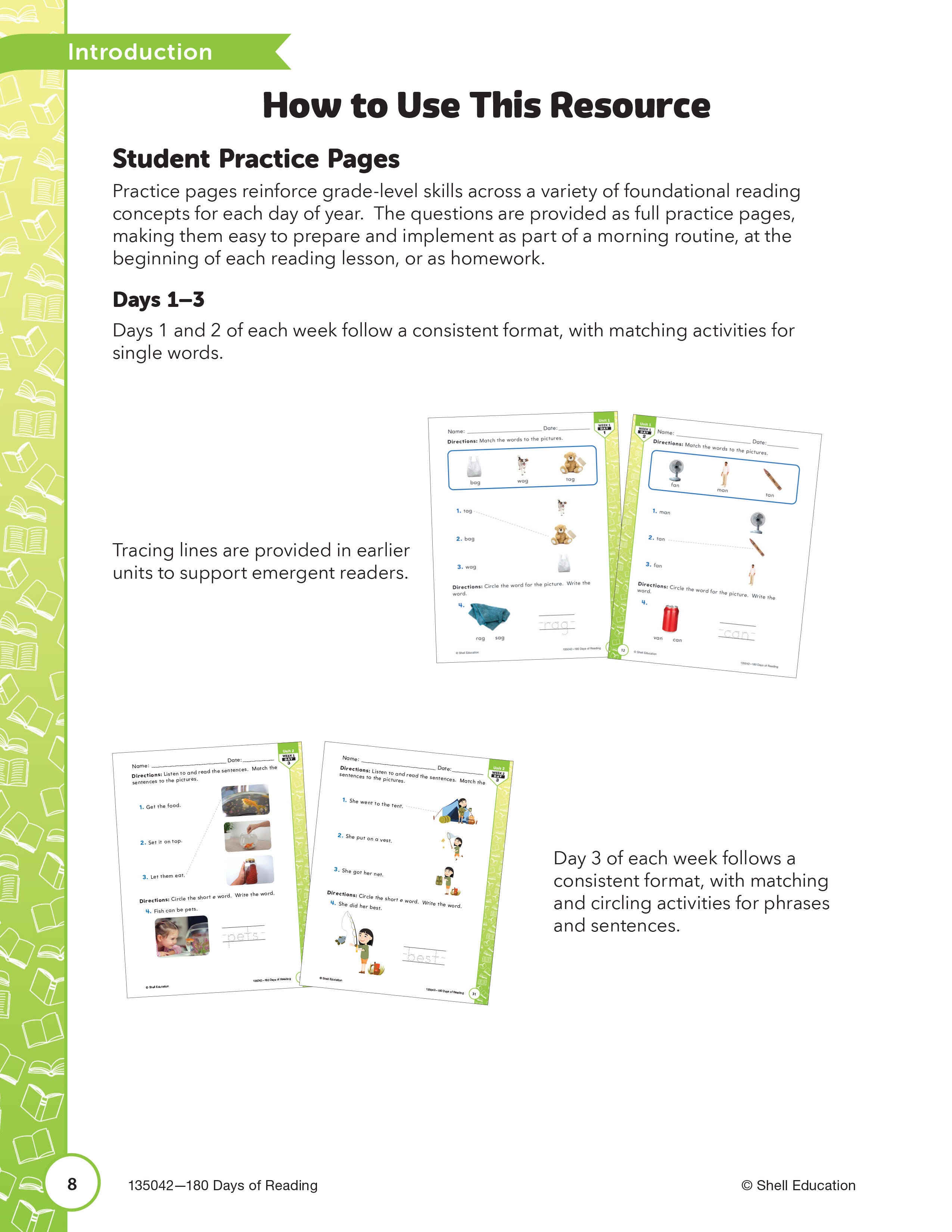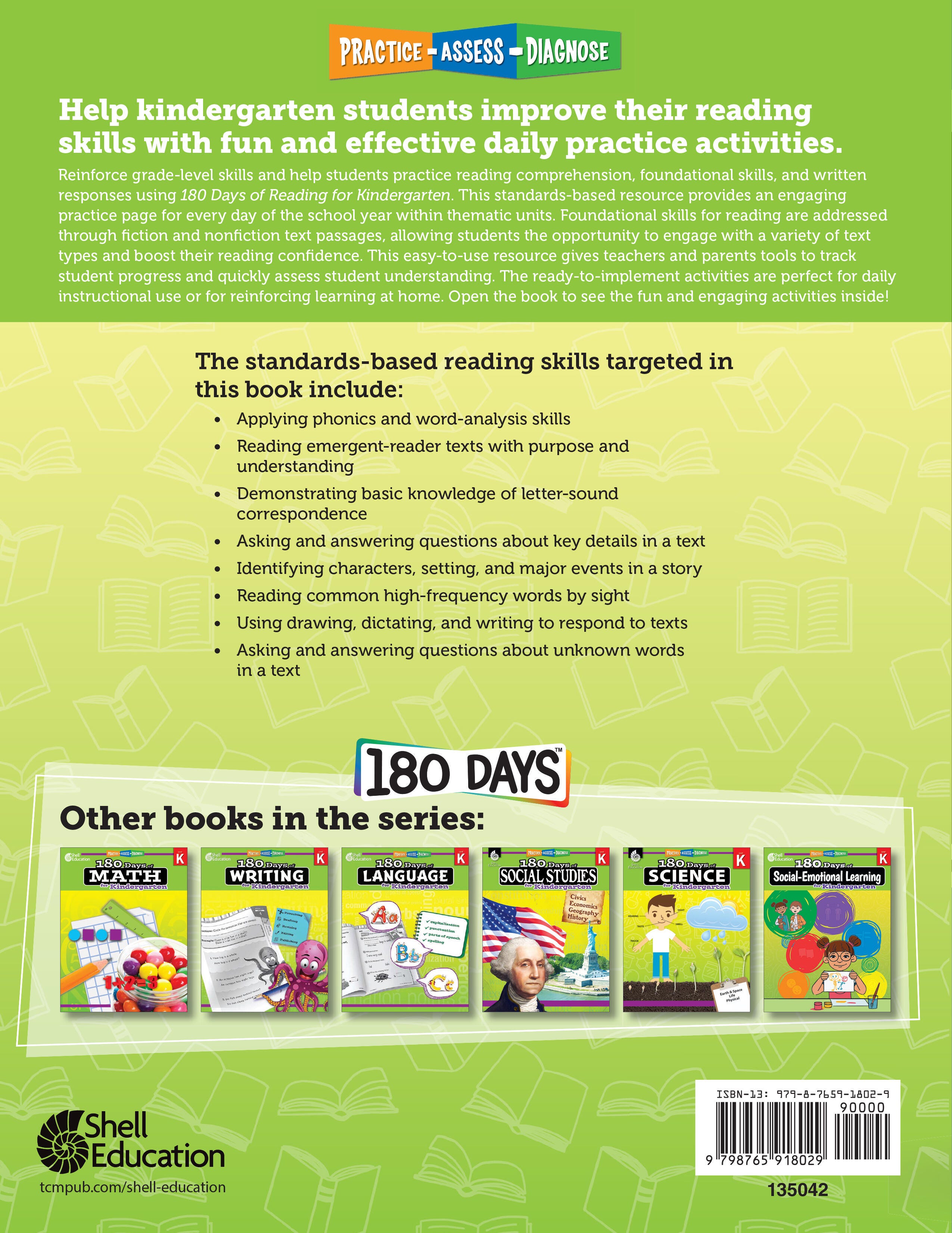 This easy-to-use kindergarten workbook is great for at-home learning or classroom instruction. Watch students learn to read and write more confidently with these standards-based learning activities. The 2nd Edition of this activity book incorporates thematic units and a combination of fiction, nonfiction, and nontraditional texts. The new edition also reinforces the connection between reading and writing by having students write about what they read. Parents appreciate the grade-appropriate reading passages and engaging topics that children will enjoy. The daily reading practice is great for homeschool, to reinforce learning at school, or to prevent learning loss over summer. Teachers rely on these workbooks to save them valuable time and address learning gaps.