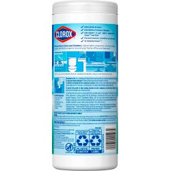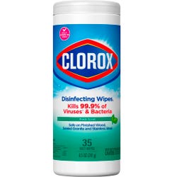 Clorox Fresh Scented Disinfecting Wipe Canister contains 35 wipes featuring bleach-free formula that kills 99.9% of bacteria including staph and salmonella. It is a one-step cleaning and disinfecting solution that is perfect for day care centers, offices, schools and restaurants. Quick, convenient pre-moistened individual wipe for cleaning hard surfaces comes in air-tight canister package that keeps it moist and effective. It is sold as 12 per case.