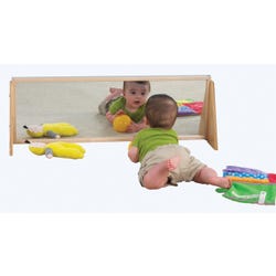 The Childcraft® 2-Position Acrylic Mirror is designed to support early development, self-identification, and creative play in classrooms, childcare centers, and home environments. Built with a durable maple frame, this shatterproof mirror can be positioned horizontally for tummy time and self-exploration, or vertically for dress-up activities and dramatic play. The sturdy screw-block reinforced top panels and dado construction ensure long-lasting durability, and an eco-friendly, stain-resistant UV acrylic finish provides a smooth, cleanable surface. This acrylic sheet mirror measures 13-1/4 W x 11-3/4 D x 36-1/2 H inches.