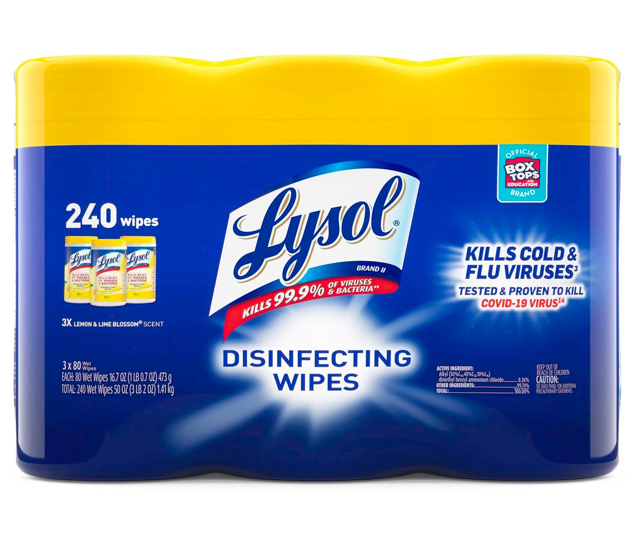 Lysol Disinfecting Wipes, Lemon and Lime Blossom Scent, Case of 2 Packs of 240 Count Wipes