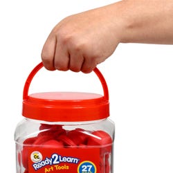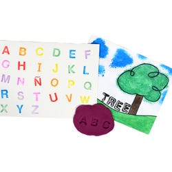 Ready2Learn delivers the perfect easy-to-use tool for young learners to get creative with the alphabet. These Easy-Grip Dough and Paint Stampers feature ball-shaped plastic handles that nest comfortably in small hands. An ideal resource for toddlers and children with special needs, these stampers provide greater fine motor control as children make patterns in clay, dough, or paint. Plus, these stampers are an excellent hands-on tool to teach letter recognition, letter formation, phonics, and spelling. This set includes 27 stampers with raised rubber uppercase letters A-Z and Ñ. Each stamper measures 1-3/4 inches tall and 1-1/2 inches in diameter. Recommended for ages 2 and up.Features