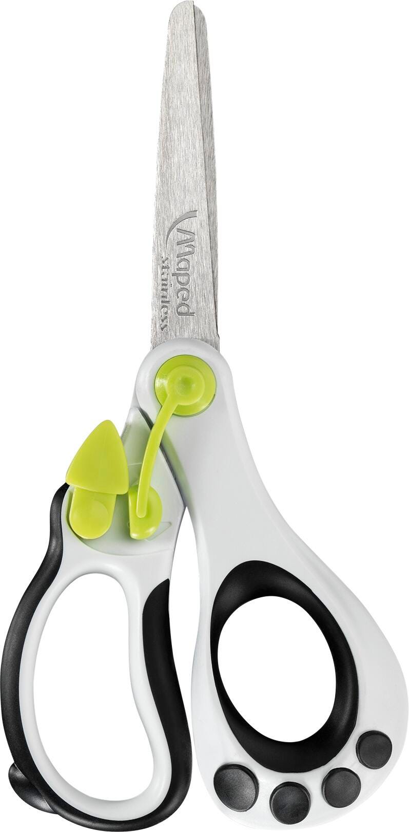 Maped Koopy Spring Assist Scissors open automatically with activation of the spring, and the finger and thumb loops are fitted to allow multiple finger placement during cutting. Scissors "grow" with the child as the self-opening feature can be disengaged, allowing the scissors to function as regular scissors. Appropriate for both left- and right-handed children. Assorted Colors.Features