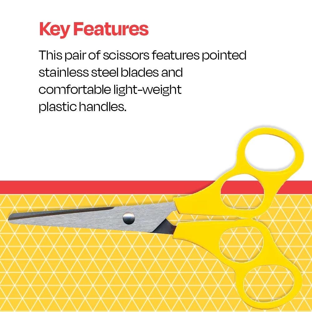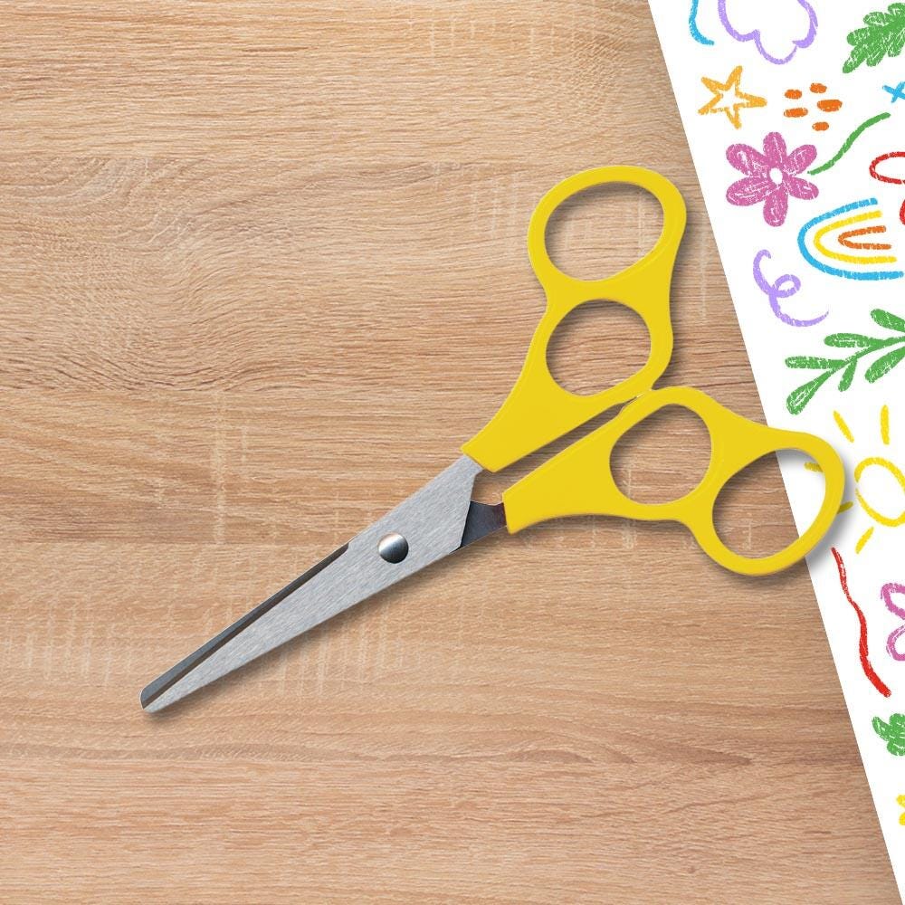 The learning scissors for guided training have blunt tips to promote safety in elementary schools, childcare centers, and recreation centers
