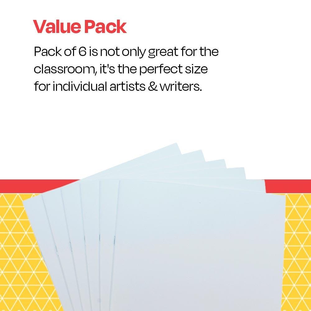 School Smart Bright Blank Books, 8-1/2 x 11 Inches, White, 12 Sheets, Pack of 6