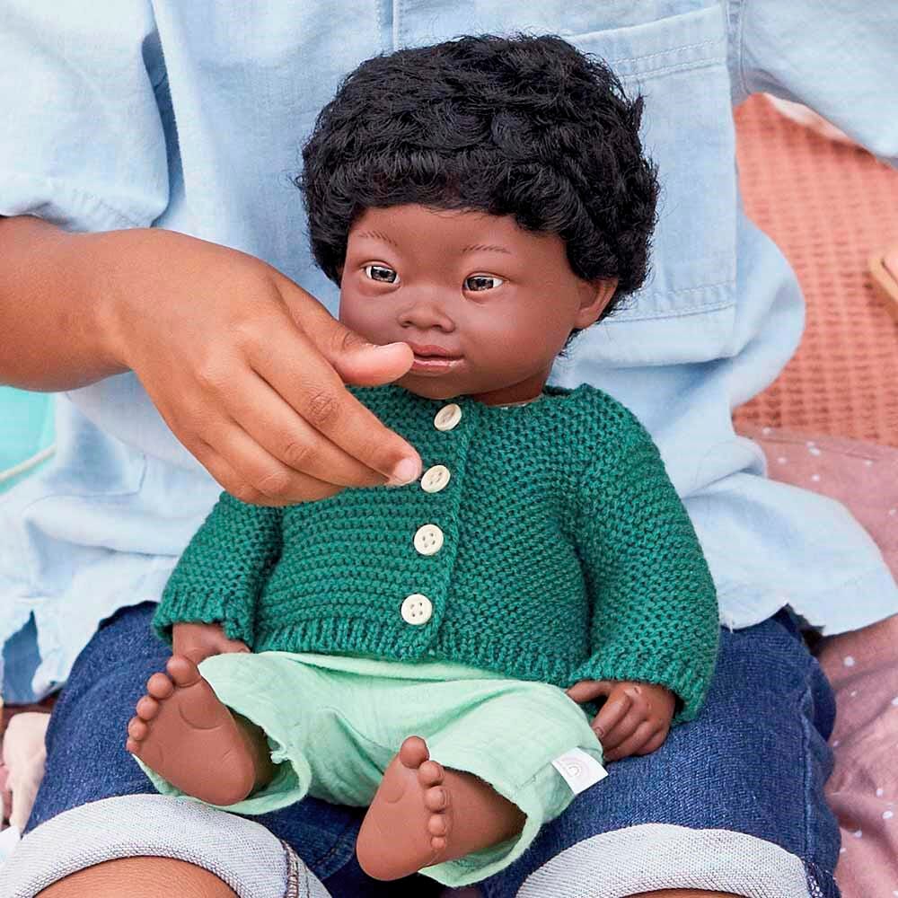 Miniland Baby Doll African Boy with Down Syndrome, 15 Inches