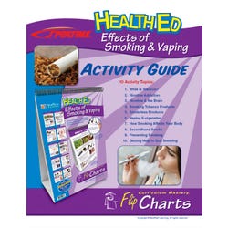 Graphically stimulating, well-organized, and highly educational, the Effects of Smoking & Vaping Flip Chart Set provides a hands-on resource for your Health Education/Physical Education studies. Leveled by grade, the flip chart provides an engaging, illustrated introduction and review of standards-based curriculum concepts. Each set features 10 double-sided, laminated charts, each 12” x 18” and spiral-bound on a durable, free-standing easel. Each chart covers a separate topic, with Side 1 featuring a graphic overview of the topic while Side 2 provides “write-on/wipe-off” activity exercises for review and reinforcement. Each set also includes a Teacher’s Guide featuring curriculum correlations, easy-to-follow instructions, and copy-masters of related exercises and activities. Perfect for use in learning centers/small group activities; independent study and remediation; classroom reference; or as a teacher resource for introducing and reviewing key concepts, the charts are mounted on sturdy easels for years of use. Topics covered: What is Tobacco?: Nicotine Addiction; Nicotine & the Brain; Smoking Tobacco Products; Smokeless Products; E-Cigarettes; How Smoking Effects Your Body; Second-Hand Smoke; Preventing Smoking; and Getting Help to Quit SmokingFeatures