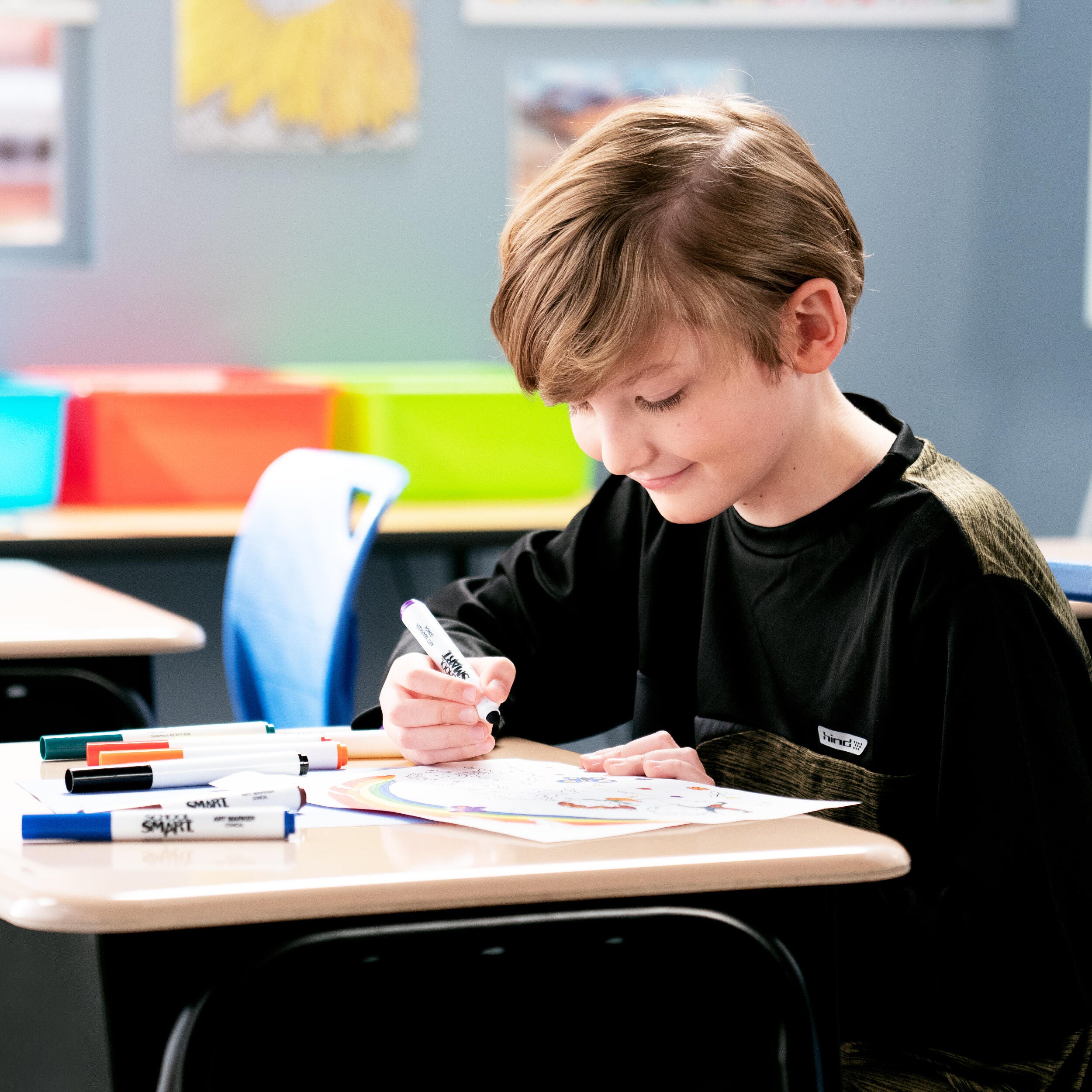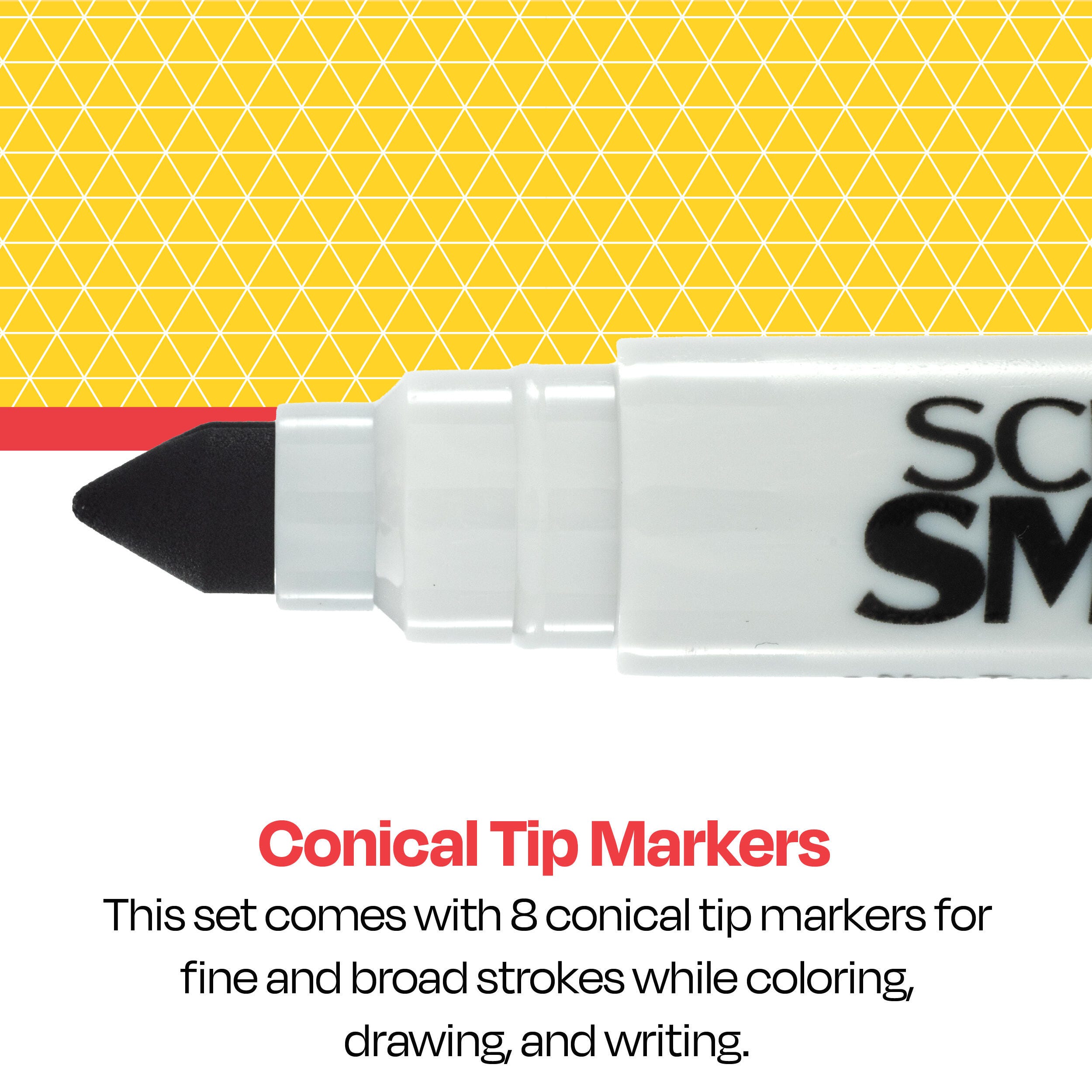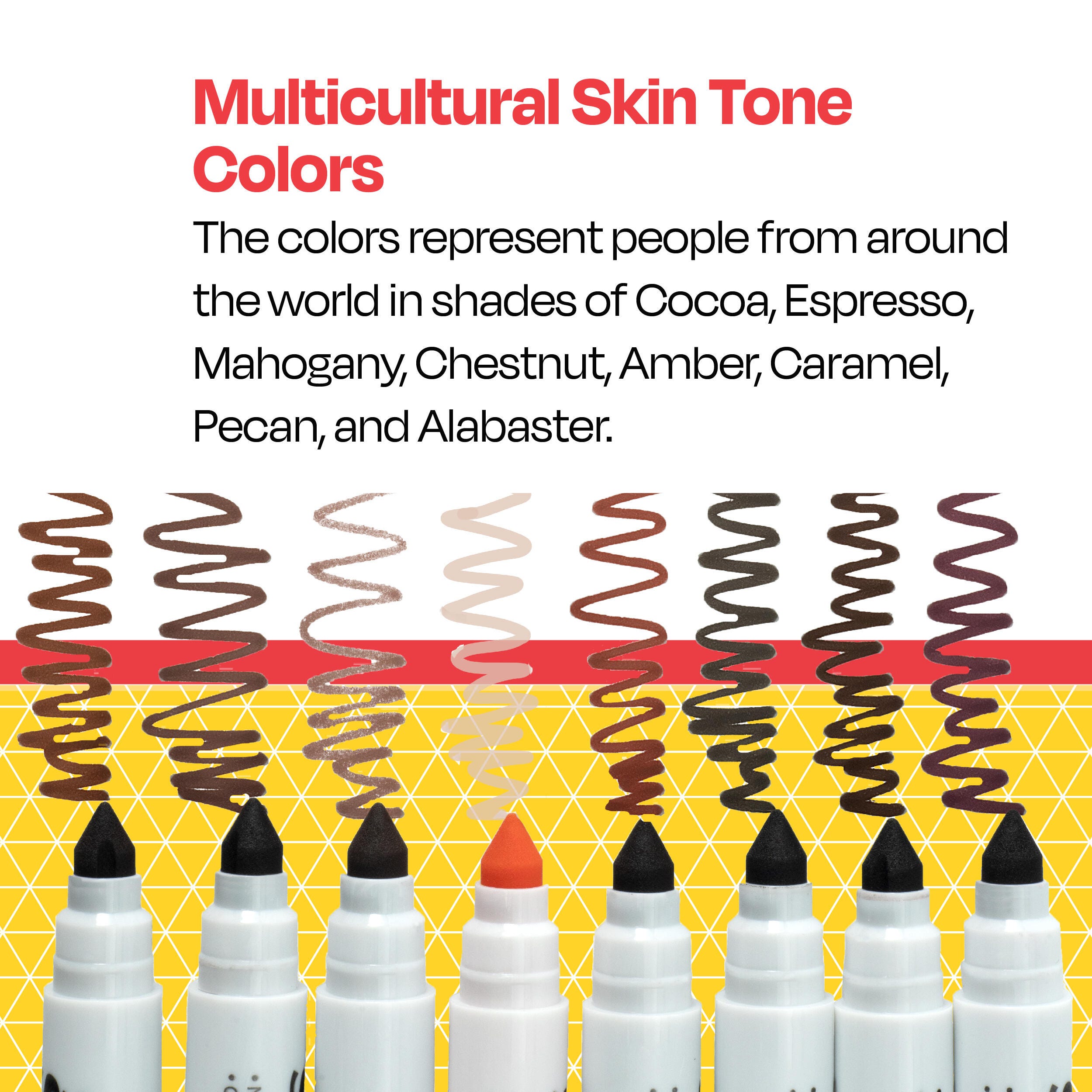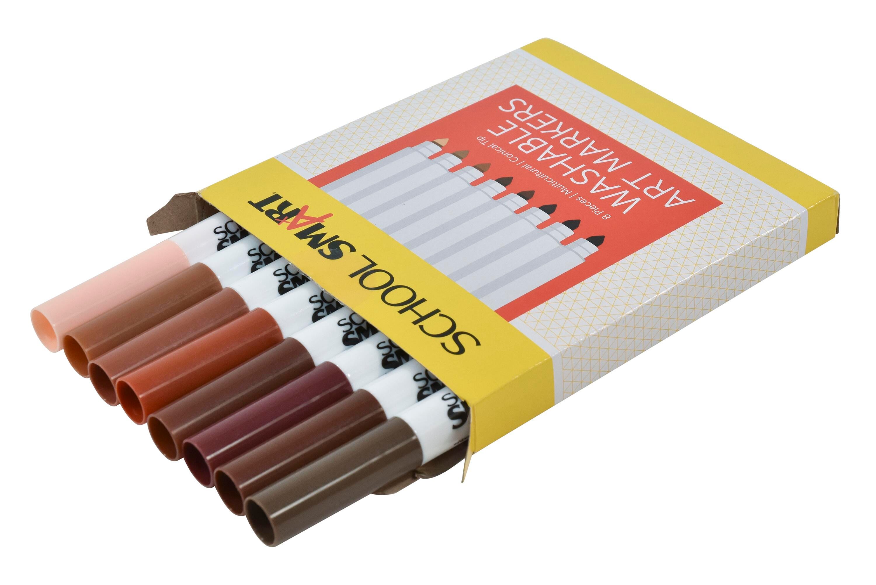 This School Smart washable markers set offers skin tone markers that make coloring pages and drawings even more detailed and realistic. This pack includes 8 specifically formulated colors representing people from around the world. Especially great for young children, these classic markers dry quickly and wash easily from skin and many fabrics. Our art markers glide smoothly on paper and the conical tips can create big, broad strokes or thin, narrow lines when needed. The high-quality design holds up to active daily use without wearing down. The set includes 8 markers, 1 each in the colors cocoa, espresso, mahogany, chestnut, amber, caramel, pecan, and alabaster.