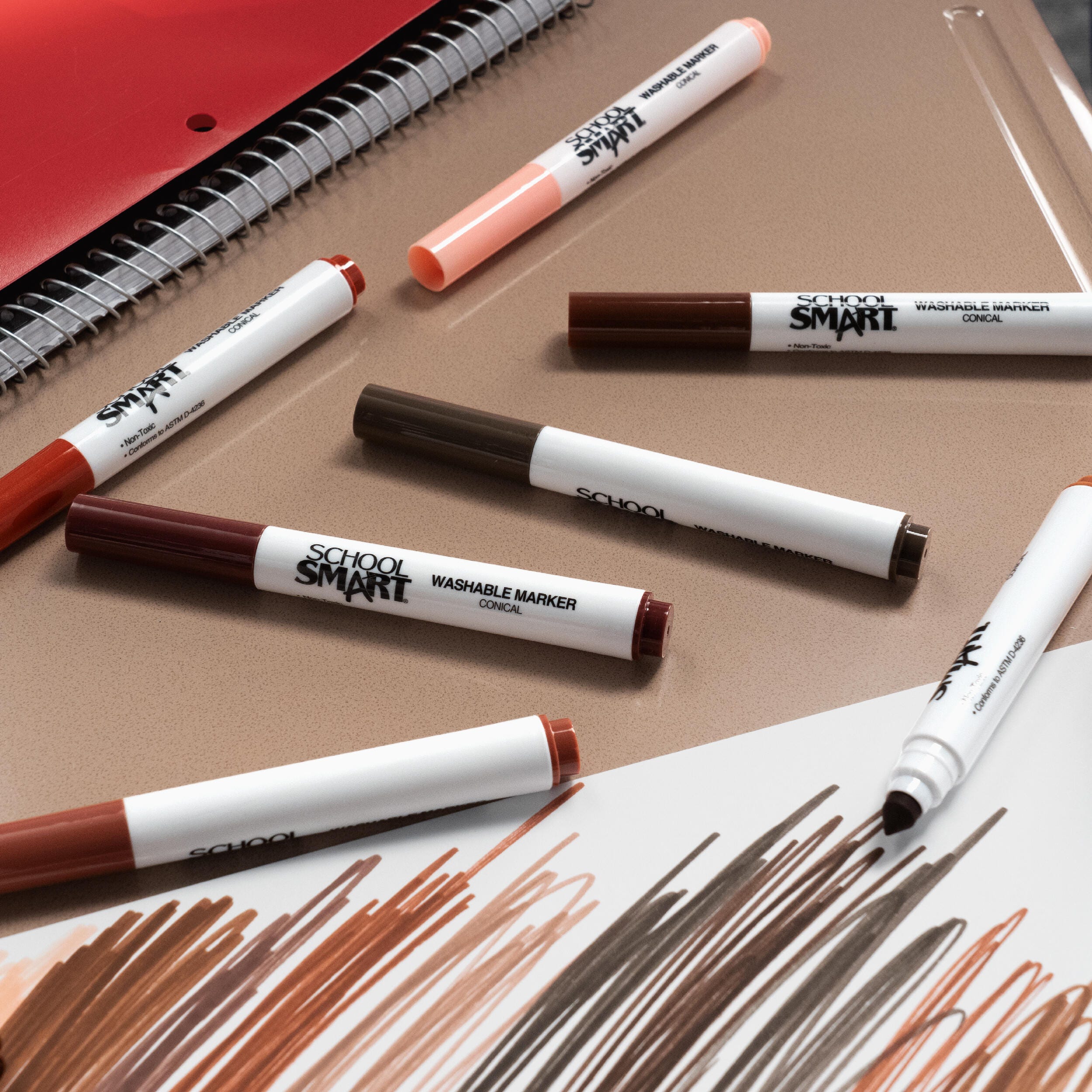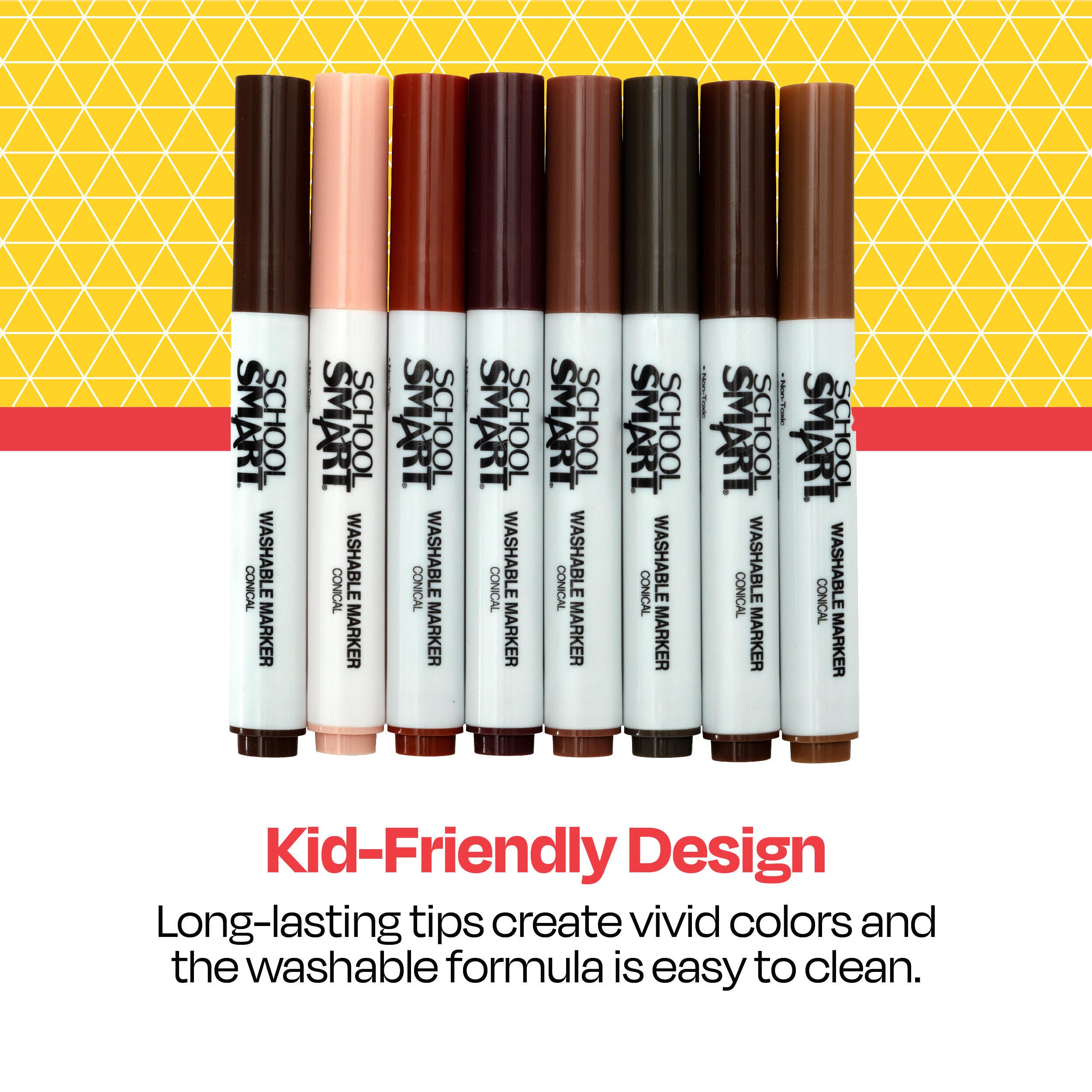 School Smart Washable Markers, Conical Tip, Assorted Skin Tone Colors, Pack of 8
