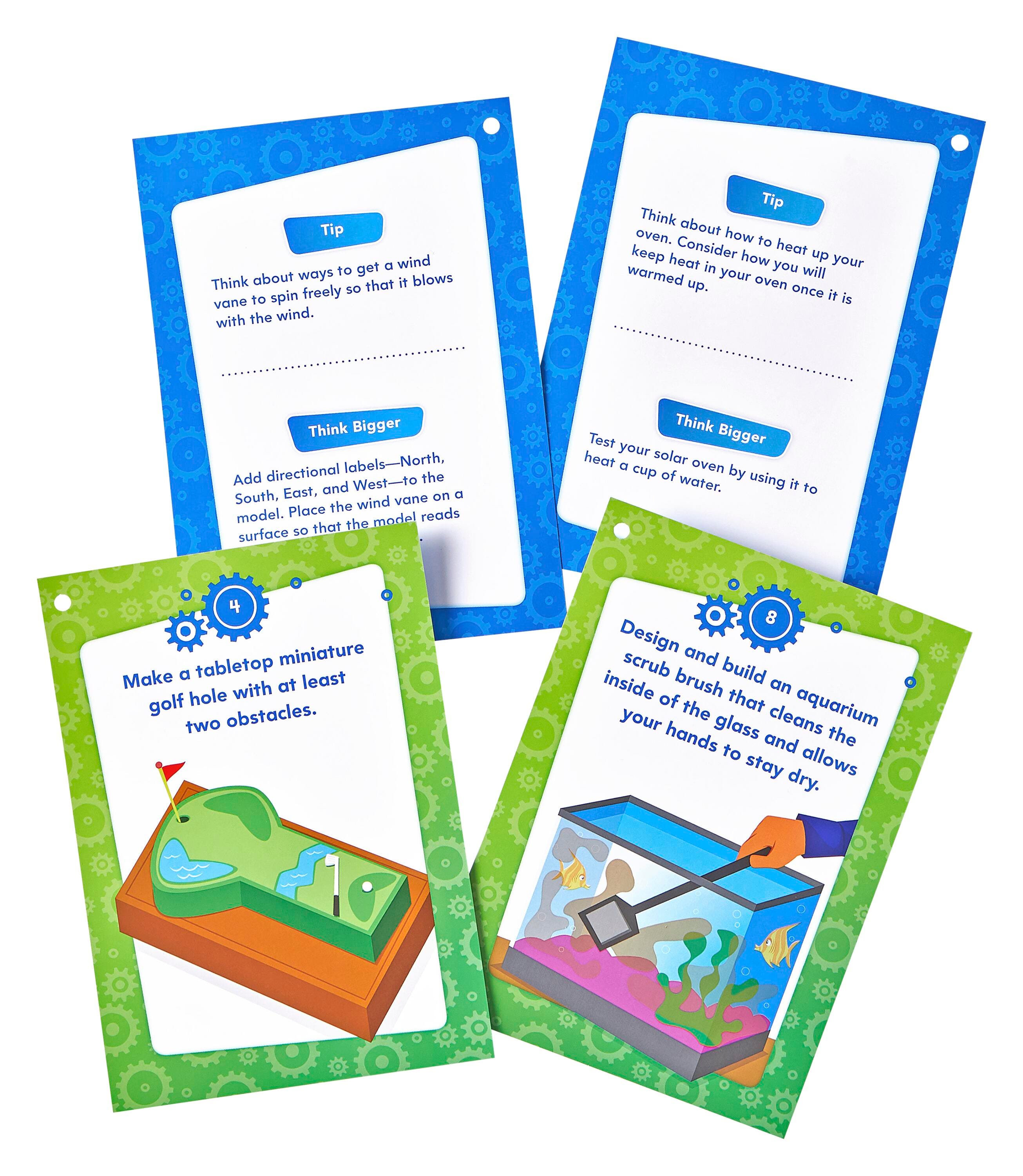 These cards provide structure by giving students ideas about what to build and how to challenge themselves to improve their designs. Each card includes design ideas with real-world pictures, tips to get the students thinking, and suggested modifications to further challenge the students with their design.Features