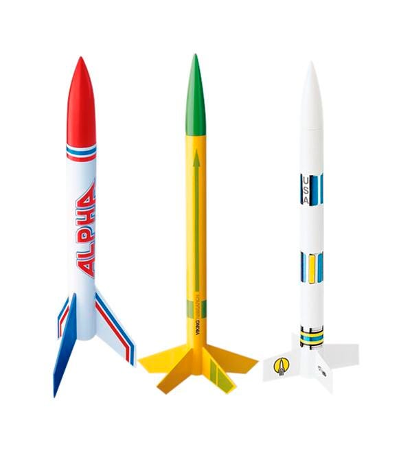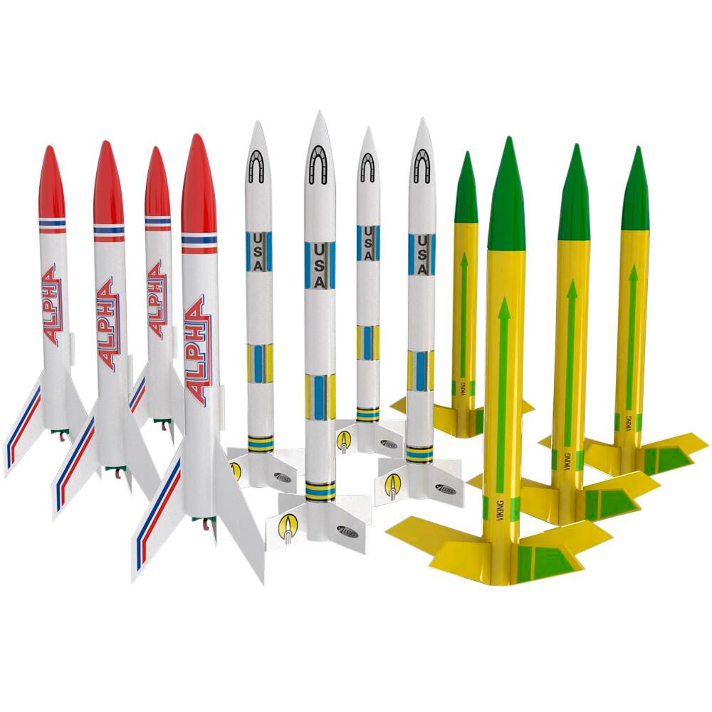 Three popular kits in one bulk pack. 4 each of the Alpha,, Viking and Generic rockets.