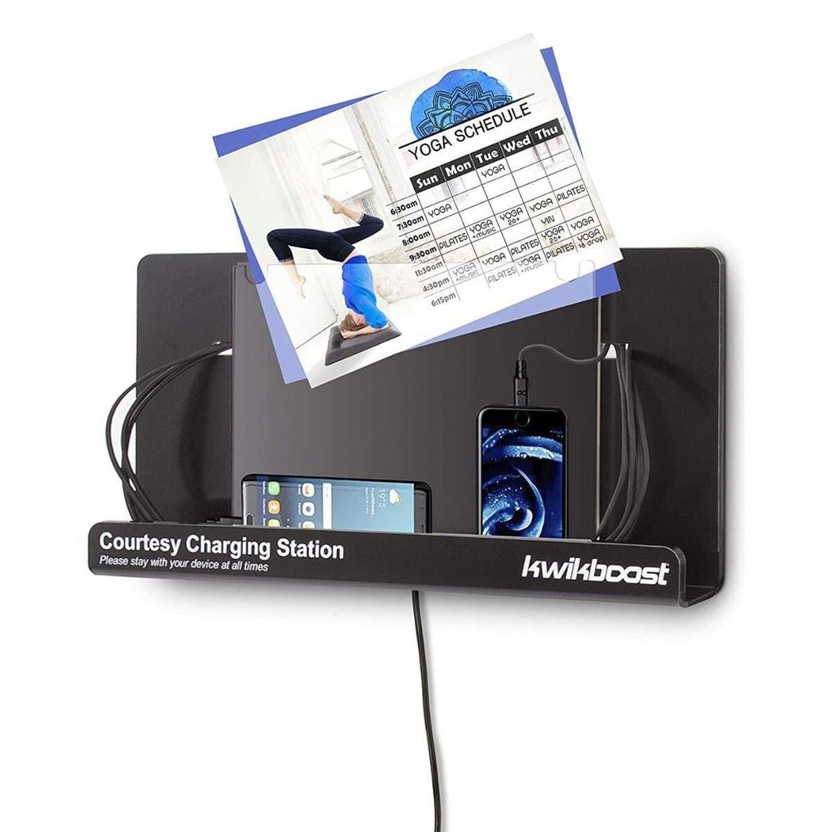 The Standard Wall Mounted Charging Station is affordable, easy to use, and built from commercial grade durable materials. The station charges 8 devices simultaneously, all at full speed. When paired with the wireless charging shelf, sku 2027592 (not included), it can charge 10 devices at the same time. Backed by a Lifetime Warranty and 1-year service plan, it's a perfect solution for universities, schools, libraries, stadiums, offices, and more.