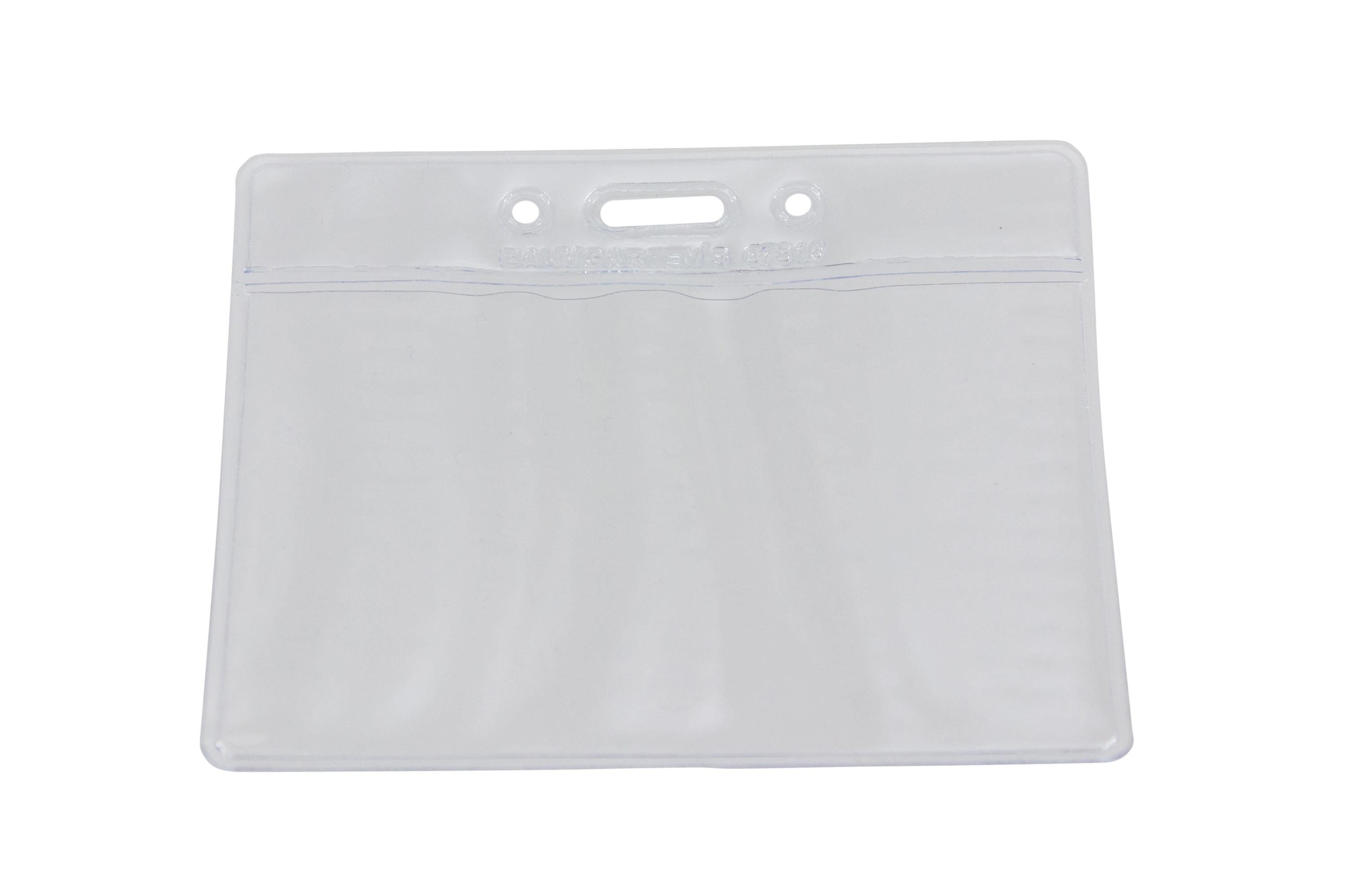 The SICURIX Horizontal Badge Holder offers a simple design and dependable school security or office security. This badge holder fits volunteer passes, employee IDs, and student identification horizontally (long, left-to-right design) with a maximum insert size of 3-1/2 x 2-1/2 inches. Equipped with pre-punched double holes and one pill-shaped hole, which makes it the perfect companion to badge clips, lanyards, neck chains, neck chain adapters, and more. Pack of 50 makes it perfect for businesses, schools, office security, or backup options for personal use. Badge holder clips are sold separately.Features