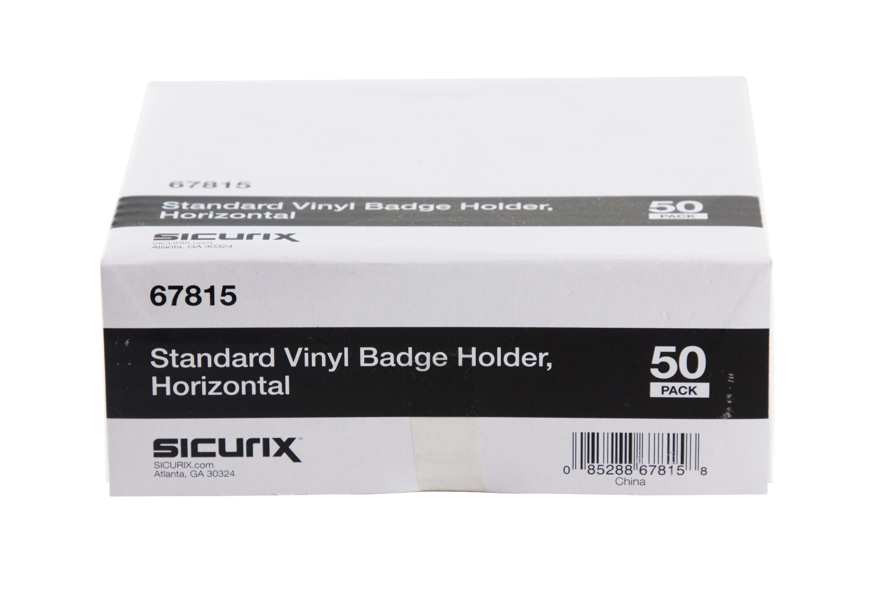 Protect your photo identification with secure and convenient badge holders from SICURIX. These badge protectors are made from vinyl, and fit with horizontal identification cards. Comes in a pack of 50.