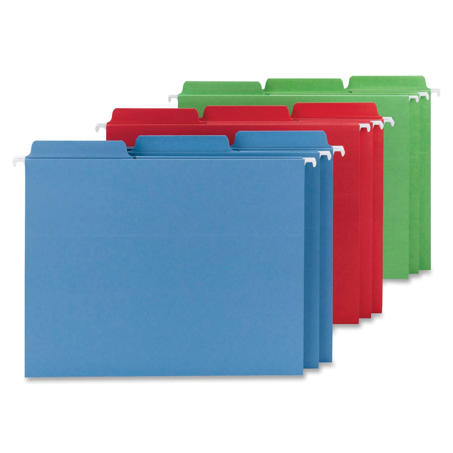 Smead FasTab Hanging File Folder, Letter Size, 1/3 Cut Tabs, Assorted Primary Colors, Set of 18