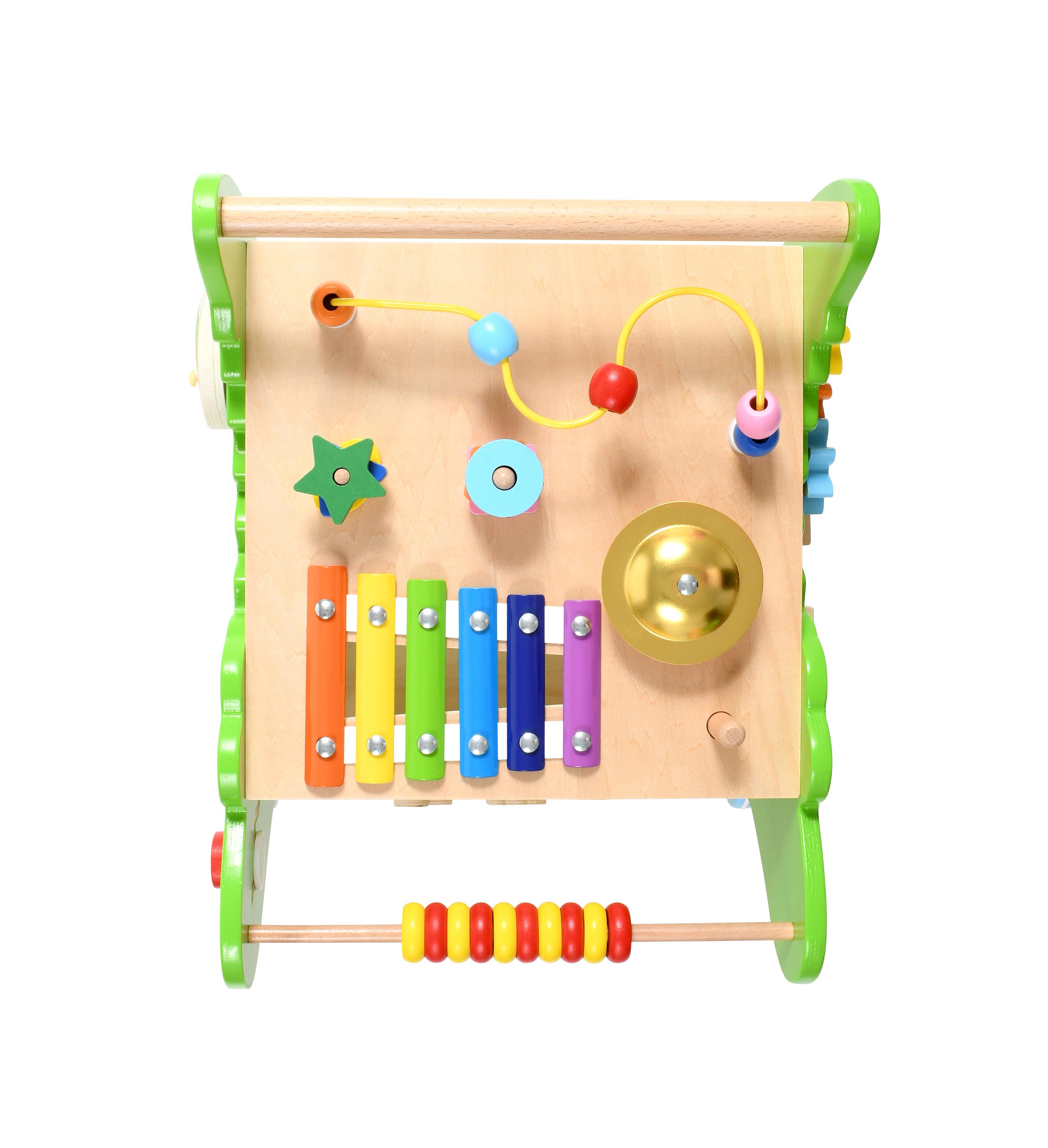 This multi-sensory crocodile walker features 10 different activities to develop fine motor skills, hand-eye coordination, descriptive language, and more. Tested to the highest consumer standards, this baby activity walker has everything you need to keep your playroom moving. This pushable walker is designed as a compact cube that's just the right height for toddlers learning to walk. The wheels on this walker are fully functional. They roll with an effortless push and feature rubber lining for added grip on slick surfaces. Assembled walker measures 16-2/5 L x 14-1/5 W x 17 H inches.Features