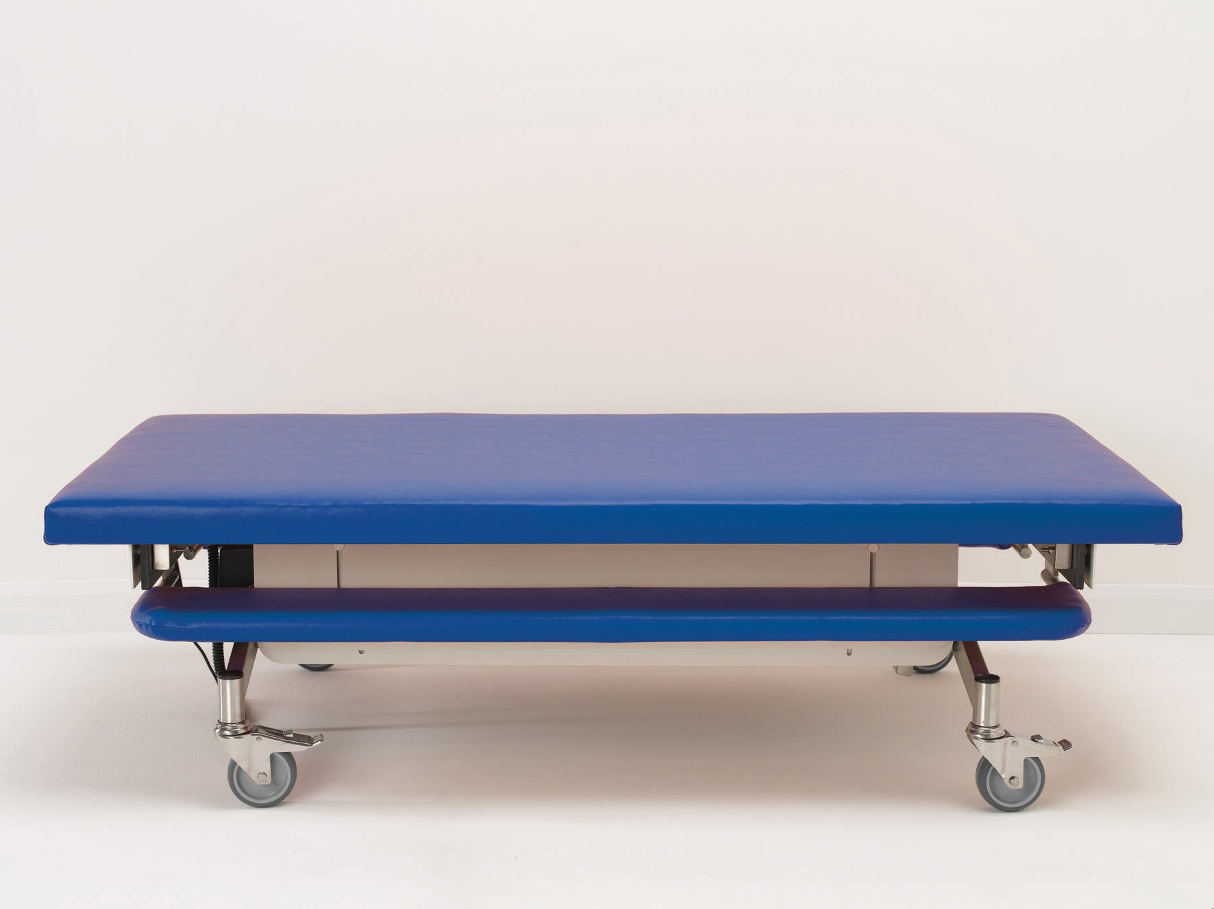 The Mobi-Changer is a fully mobile changing table that requires no installation and can be easily transported from room to room for multi-transfer or multi-user environments like care spaces or healthcare facilities. Designed with mobility and safety in mind, it's made with stowaway side rails for extra precaution. Whether you are transferring from a bed, a wheelchair, or a toileting chair, the Mobi-Changer has you covered. Mobi-changers come with two rechargeable batteries. Each battery should be charged for at least 24 hours upon receipt by connecting the battery to the wall-mounted charger. For routine use, the battery should be removed from the Mobi-changer and charged daily. The second supplier battery enables the mobi-changer to be used while the second battery is being charged. The Mobi-Changer has a protective skirt to prevent any contact with the powered lifting mechanism, ensuring the caregiver can work safely and efficiently. It measures 79 x 38 inches and can accommodate up to 1000 pounds. It has an adjustable height range of 21-3/4 to 36-1/4 inches.