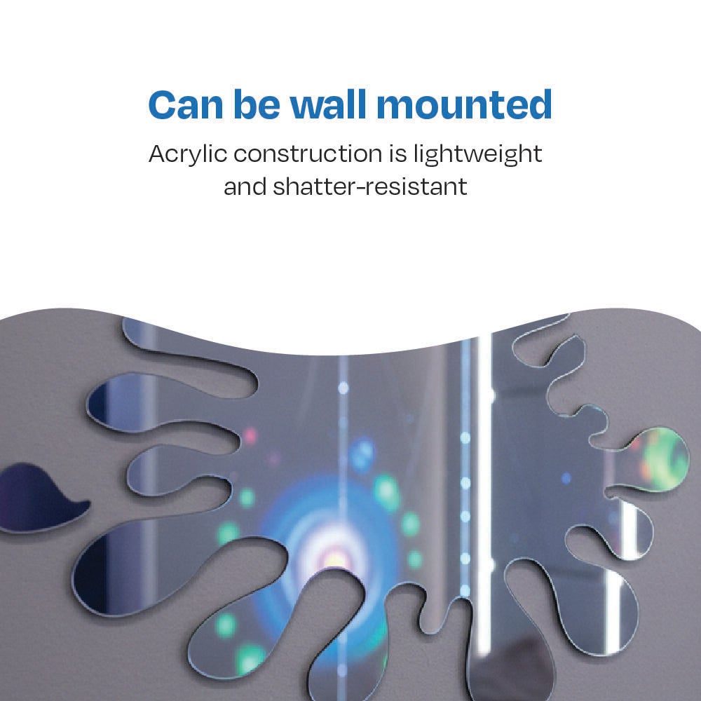 Fun mirror is in the shape of a water splash, designed to capture attention