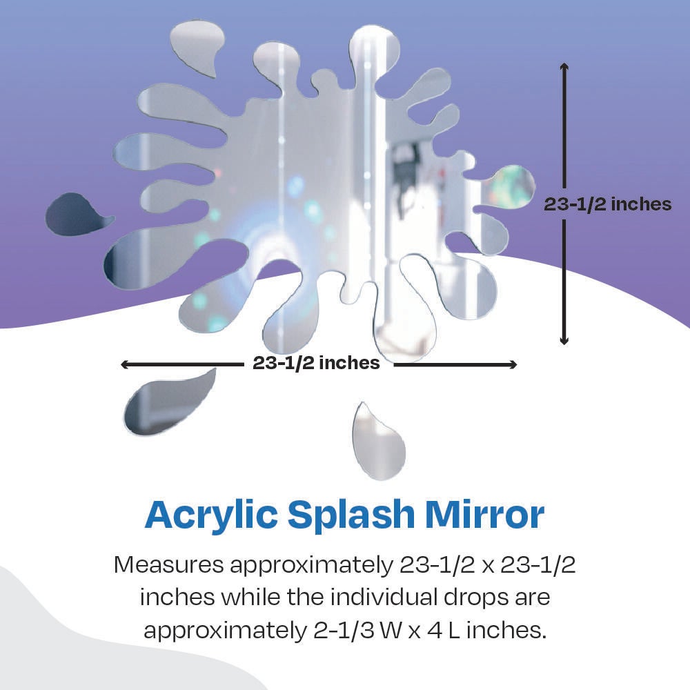Make a splash without the water! This dramatically designed, eye-catching mirror is really worth another look! This modern and functional mirror is perfect for inclusive spaces as a wall staple or to be passed around the care space or playroom for fun light play and reflective play. This mirror weighs 2-1/5 pounds. Measures approximately 23-1/2 x 23-1/2 inches while the individual drops are approximately 2-1/3 W x 4 L inches.