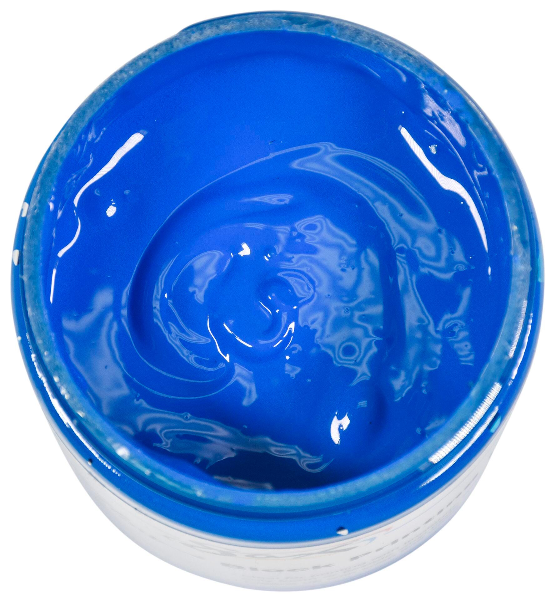- This blue block print ink comes in an 8 ounce wide mouth jar