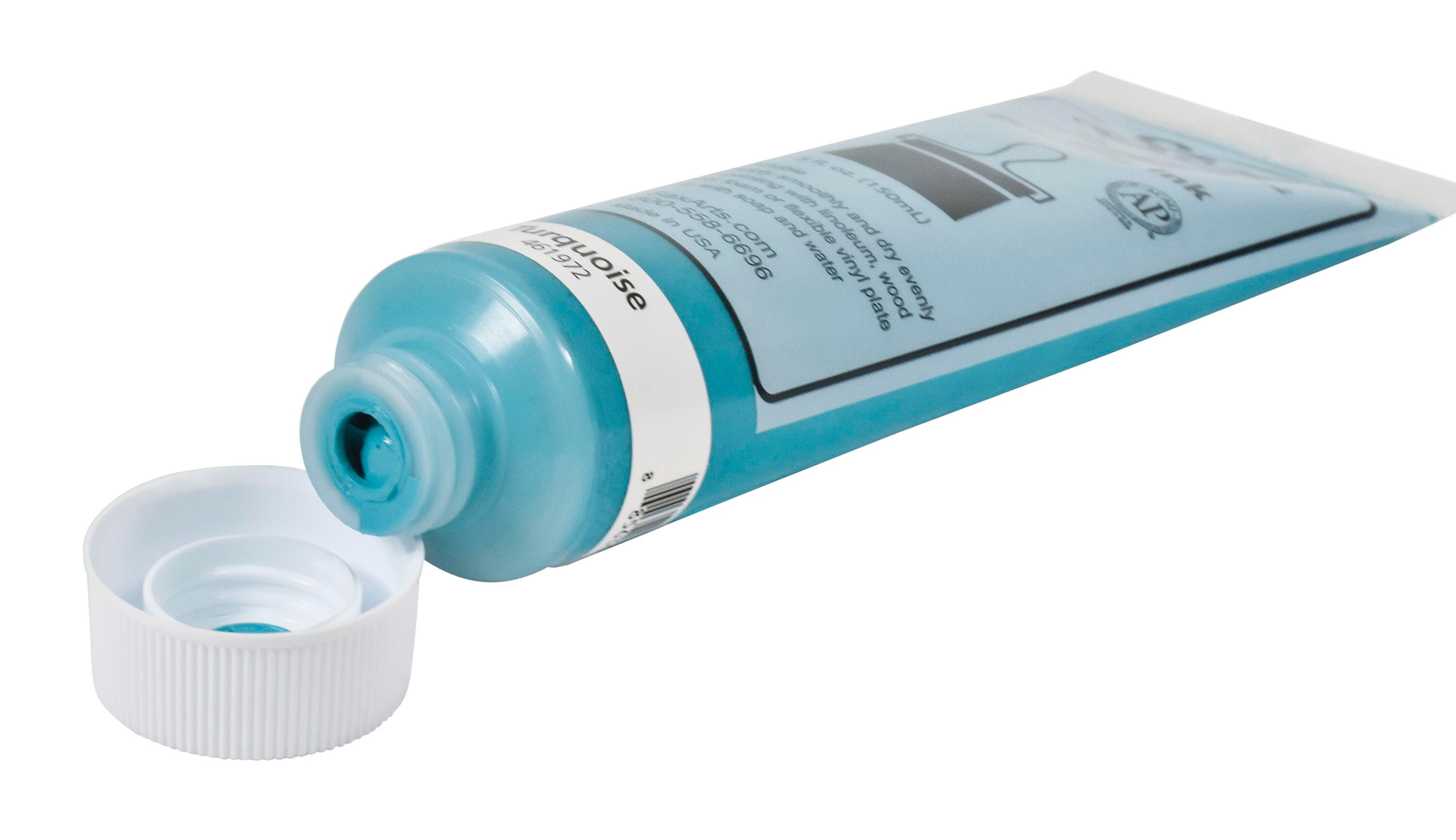 • Turquoise block print ink comes in a small, squeezable tube for easy handling