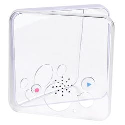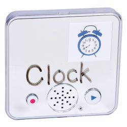 The Sound Bank Mirror makes recording and playback as easy as 1-2-3! Record up to 30 seconds of sound and play back with ease. Big, intuitive buttons at front include Record/Stop button at front left (with pink circle indicator) and Play button (with light blue forward arrow indicator) make it easy for youngsters to tape their own conversations, sing a song, and beyond. Plus, a unique front mirror allows kids to see themselves speak while recording! The back includes the option to select 3 different sound levels, along with a recording lock button to protect important recorded information from being overwritten. Front cover is removable to allow pictures to be placed behind the cover. For ages 3 and up. Requires 3 AAA batteries (not included).Features