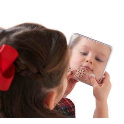 See, speak, and repeat! This at-home learning Sound Mirror allows kids to view themselves while talking into voice recorder, helping them master the art of speech, listening, and memory recall.