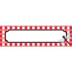 Trade out the ordinary white labels for these extra cute (and double-sided) name plates from Barker Creek! This pack includes 6 designs in black, yellow, and red (with mixed patterns of wide stripes or buffalo plaid with sweet insects or sunflowers) for endless decorating options. Use the side with ruled paper lines when making name plates for student desks and lockers, creating word walls, flashcards for spelling and vocabulary lists, and more. Use the side without the rules for making fun bulletin board signs, labeling cubbies, making hall passes, and adorning any organization or creative project. Set coordinates with Barker Creek's Buffalo Plaid and Wide Stripes collection; simply type in "Barker Creek Buffalo Plaid and White Stripes"; "Barker Creek Wide Stripes"; or "Barker Creek Buffalo Plaid" in our search engine near top of page.Features