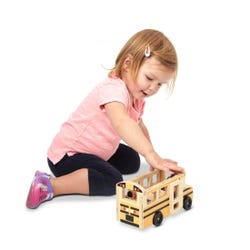 The Melissa & Doug School Bus Play Set includes solid-wood play figures, smooth-rolling wheels, and a door that opens as well as closes for a more engaging role-play experience for the playroom, classroom, care center, and beyond. This set features quality wooden construction for long-lasting durability. It's a perfect activity and prop for little ones to master building, sorting, matching, counting, and hours of imaginative fun. Includes a fun flip-open stop sign to ensure every wooden figure crosses safely! For ages 3 and older.Features