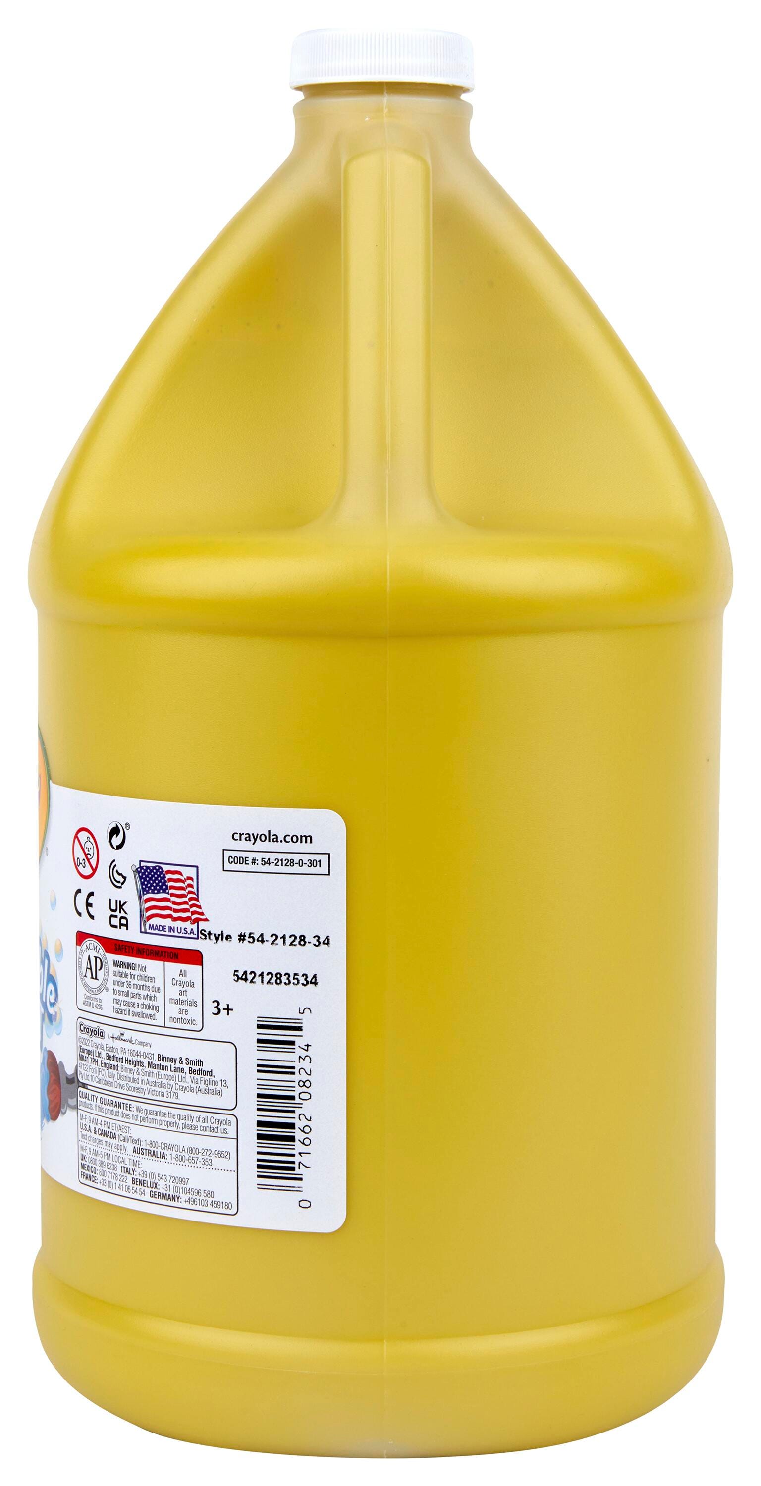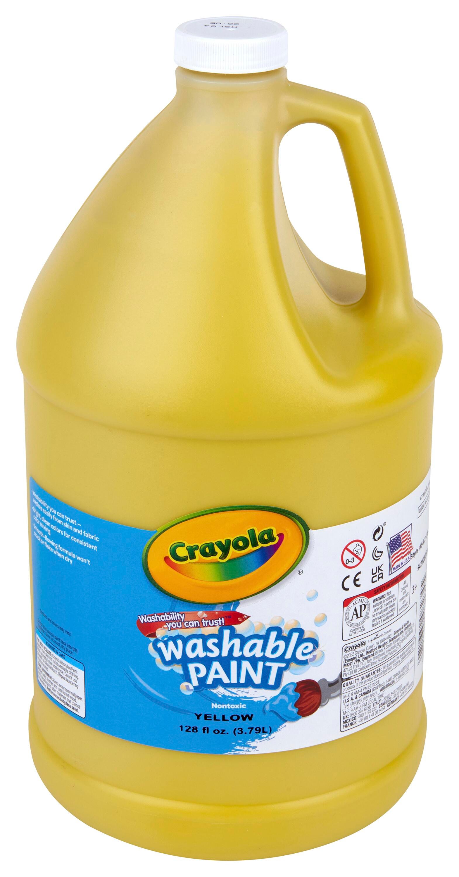 Enhance any artwork with high-quality and vibrant Crayola Washable Paint! The paint's thick, creamy consistency provides rich color and an opaque covering on most surfaces. Plus, this child-friendly paint is easily washed from skin and almost all clothing. This bright yellow paint comes in a 1 gallon plastic jug with a screw lid so it is easy to pour—great for large groups or big projects in the classroom, childcare center, or home.