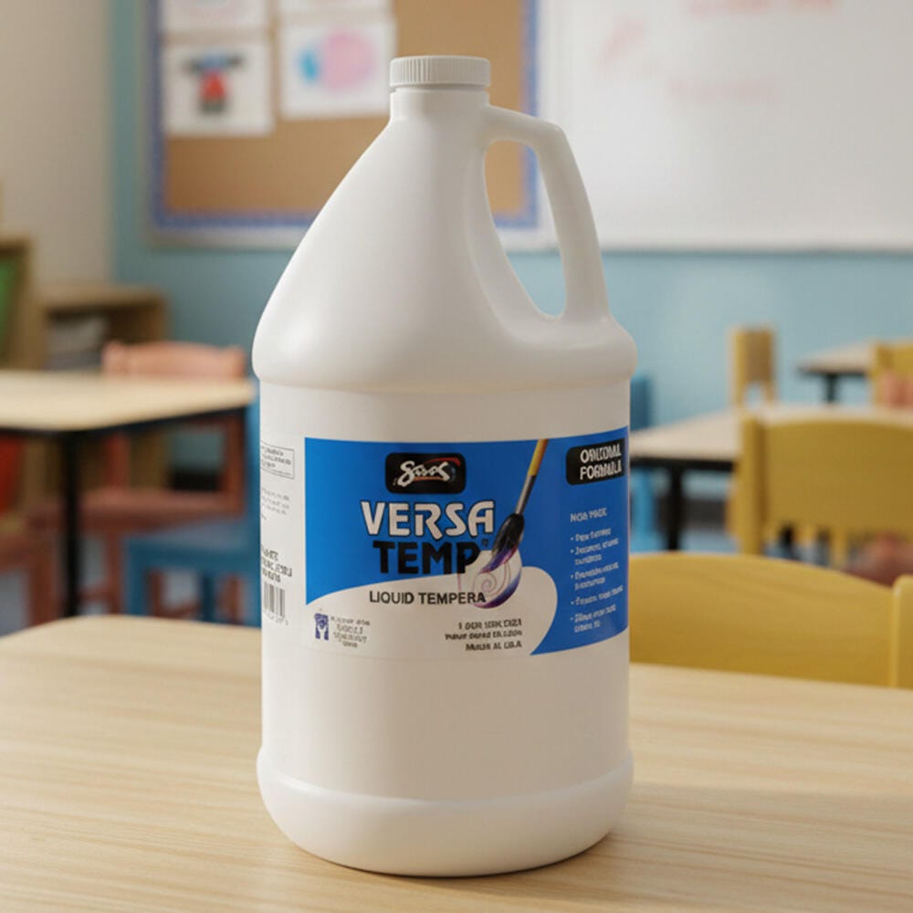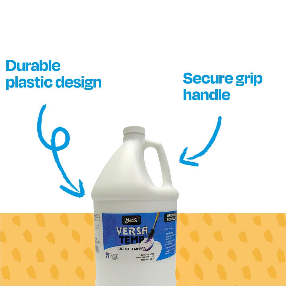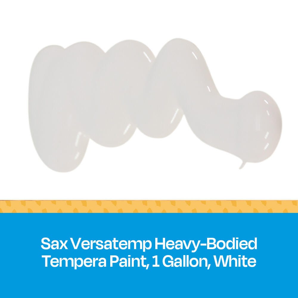 Sax Versatemp heavy-bodied tempera paint in white produces bold, vibrant results. Foster creativity with a paint that resists cracking and chipping. The large gallon bottle is easy to pour and store, and is perfect for sharing in the classroom. Complete art projects, posters, and signs that stand out with one shade or craft new hues by mixing. The heavy formula is easy to apply and mix.