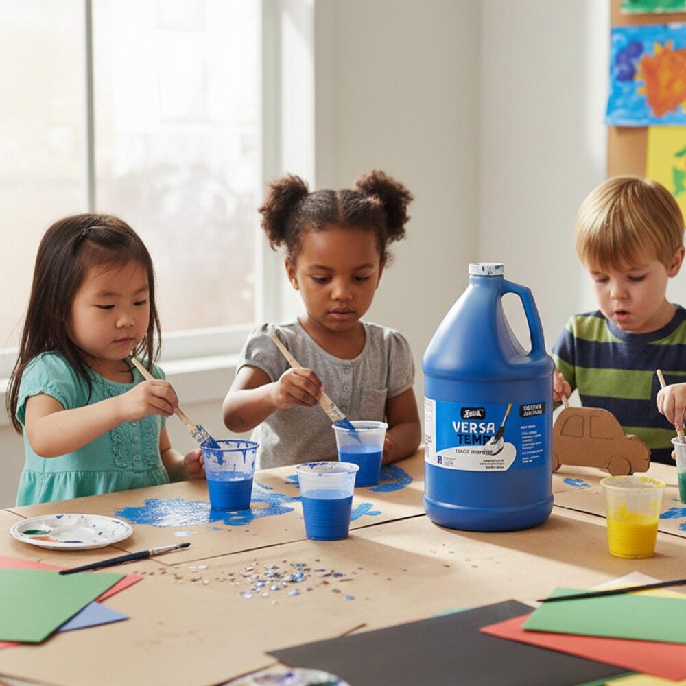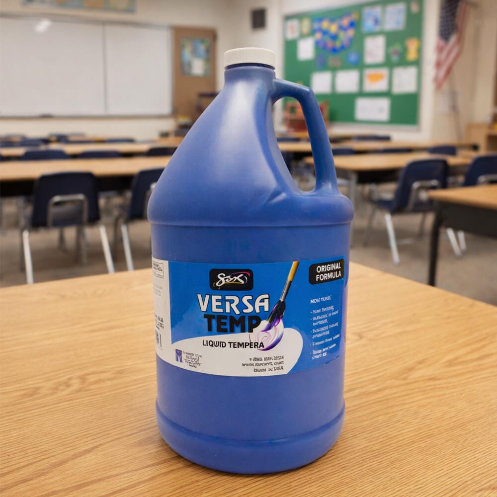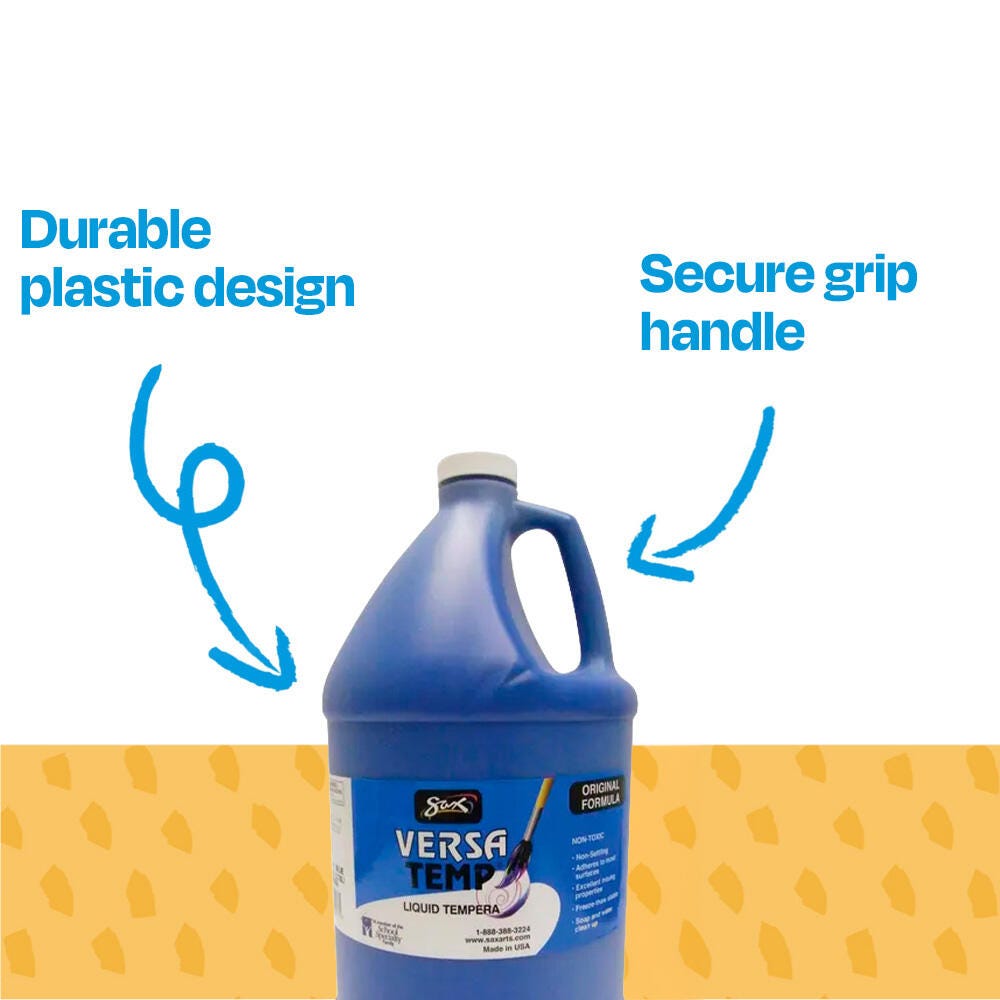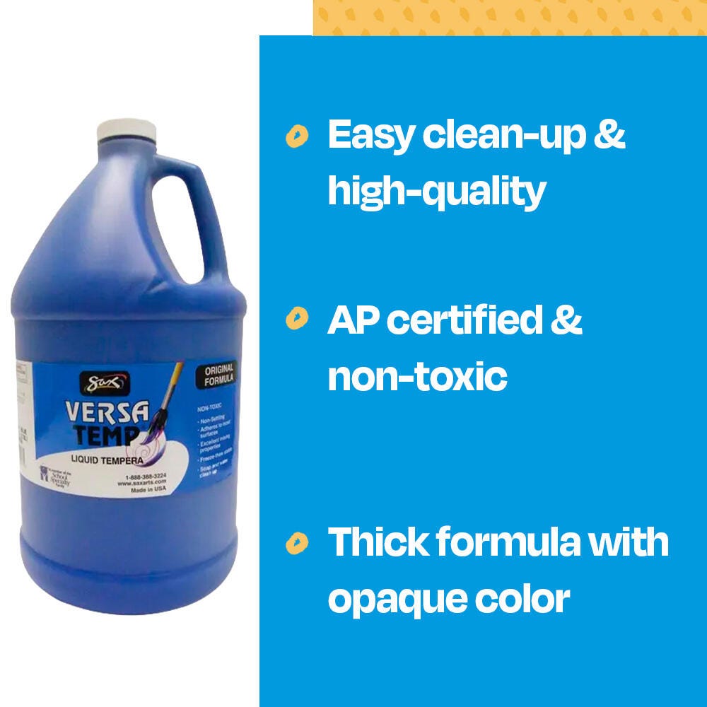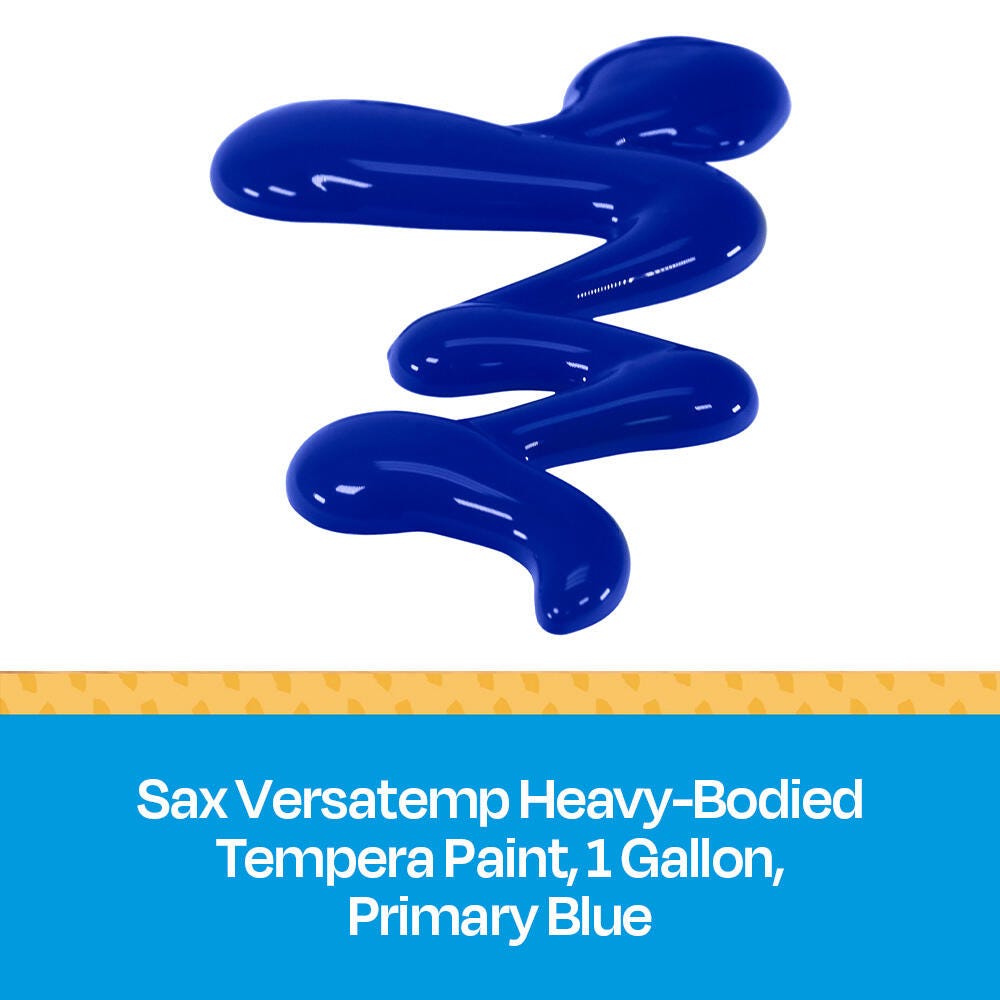 Sax Versatemp heavy-bodied tempera paint in primary blue produces bold, vibrant results. Foster creativity with a paint that resists cracking and chipping. The large gallon bottle is easy to pour and store, and is perfect for sharing in the classroom. Complete art projects, posters, and signs that stand out with one shade or craft new hues by mixing. The heavy formula is easy to apply and mix.