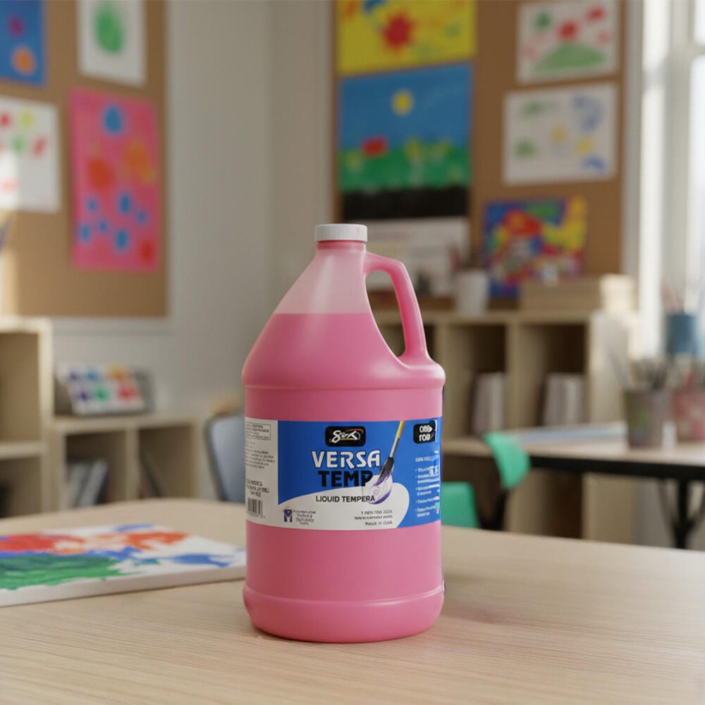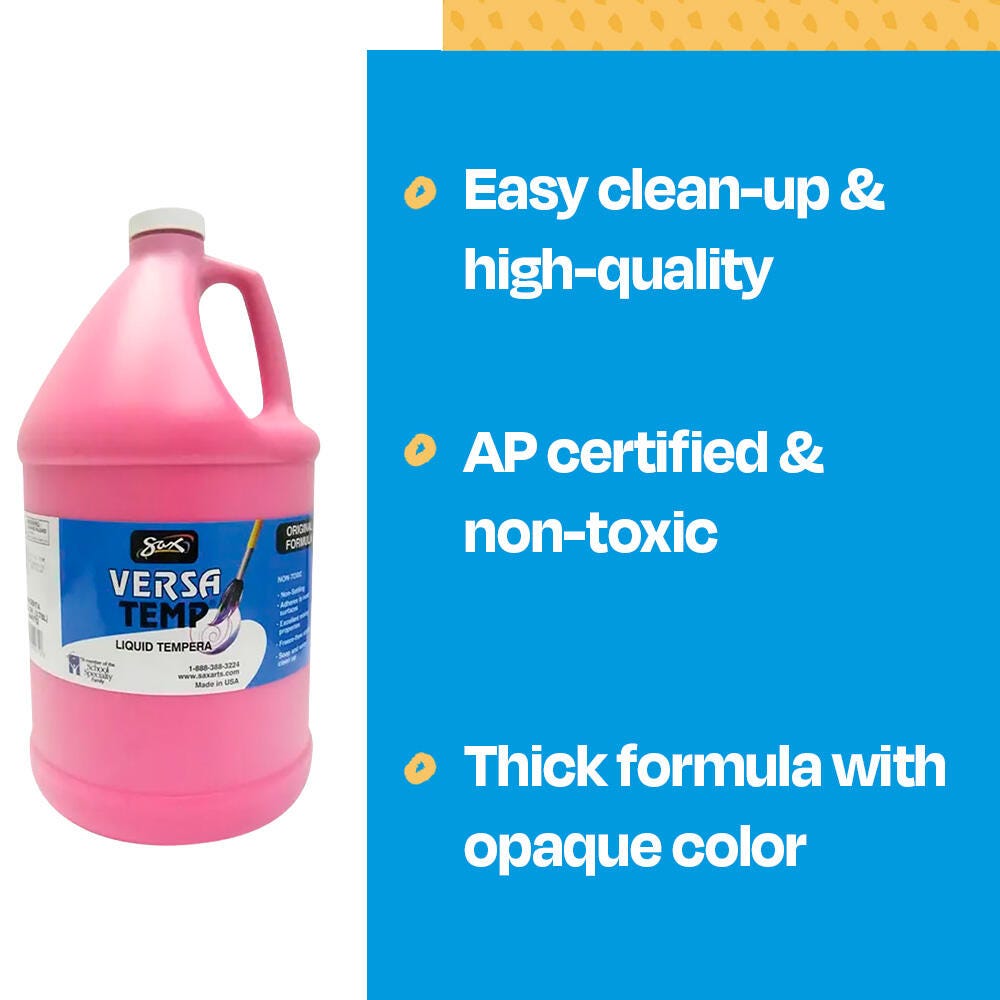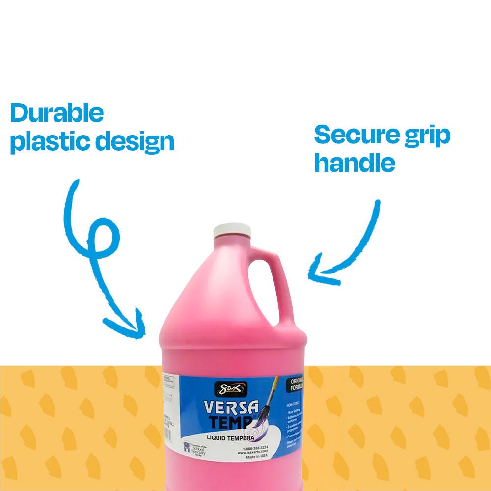 Sax Versatemp heavy-bodied tempera paint in magenta produces bold, vibrant results. Foster creativity with a paint that resists cracking and chipping. The large gallon bottle is easy to pour and store, and is perfect for sharing in the classroom. Complete art projects, posters, and signs that stand out with one shade or craft new hues by mixing. The heavy formula is easy to apply and mix.