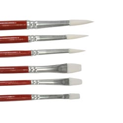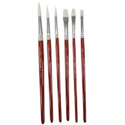 Sax white synthetic taklon paint brushes have supple yet resilient bristles in various sizes to create beautiful, dynamic designs with light and medium-bodied paints. Use this set with oil, acrylic, and watercolor. Crafted for clean brush strokes, the brushes come with short handles and assorted sizes. The short handle size allows for more precise, intricate brush strokes when working close to your art. Get predictable brush strokes every time with great color capacity, crisp edges, and sharp points on our synthetic brushes.Features