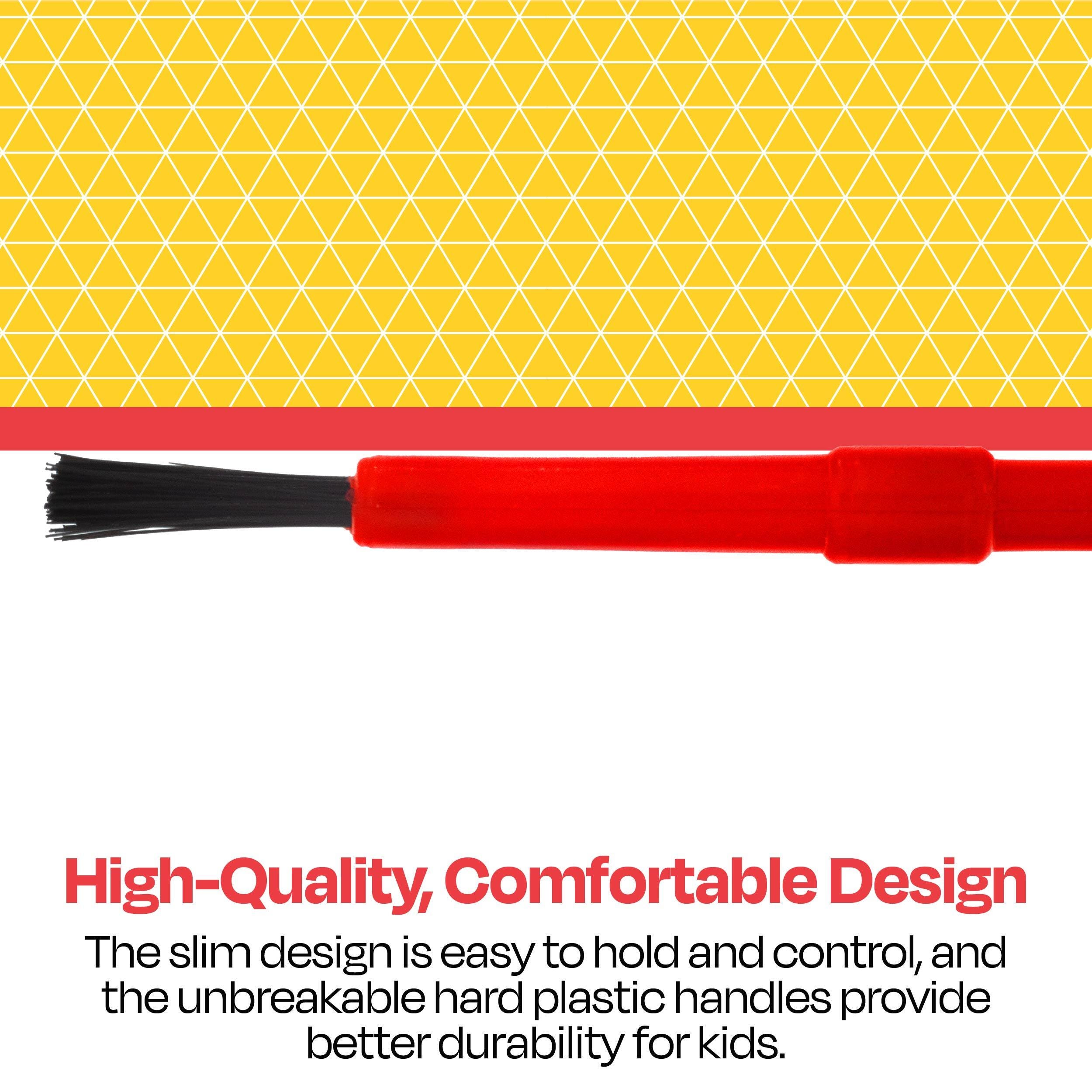 Children love the easy-to-hold round brushes with plastic handles