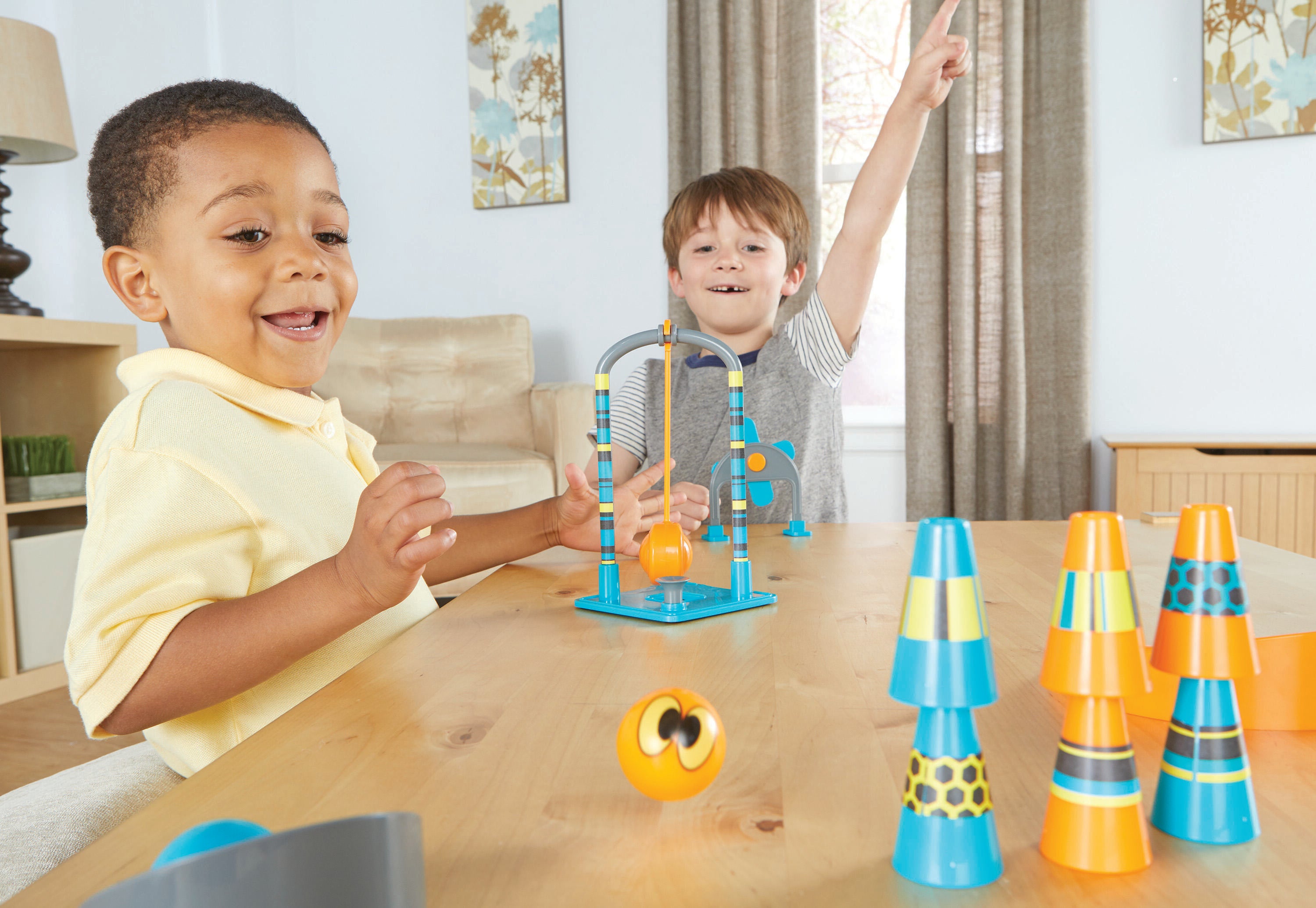 Encourage your early learners through a trial and error approach to problem solving through game-like challenges. This pendulum set offers an early introduction to concepts such as force and momentum. This hands-on activity set challenges kids to send the included launch balls flying toward goal cups and targets with the help of a three-piece adjustable pendulum. What seems like a collection of simple tasks will actually challenge each child's engineering, problem solving, and critical thinking skills as they search for the ideal solution. Pendulum stands approximately 7-3/4 inches tall. Age 5+. Grade K+.